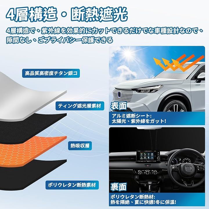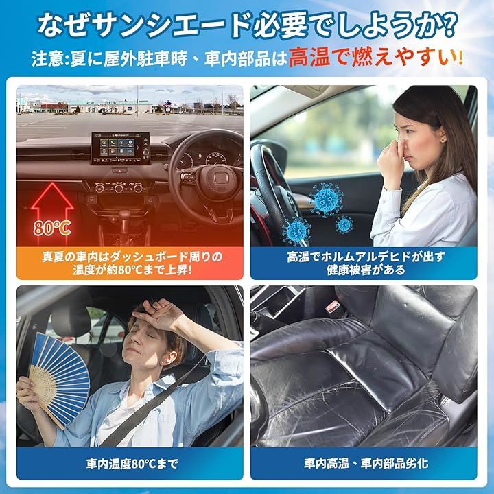 フロントサンシェード フロントガラスサンシェード 吸盤不要 遮光断熱