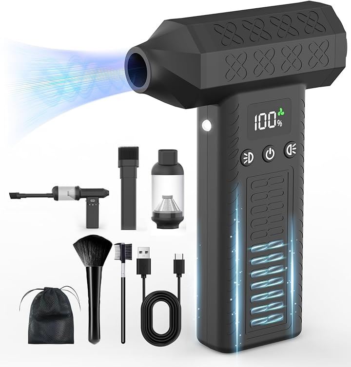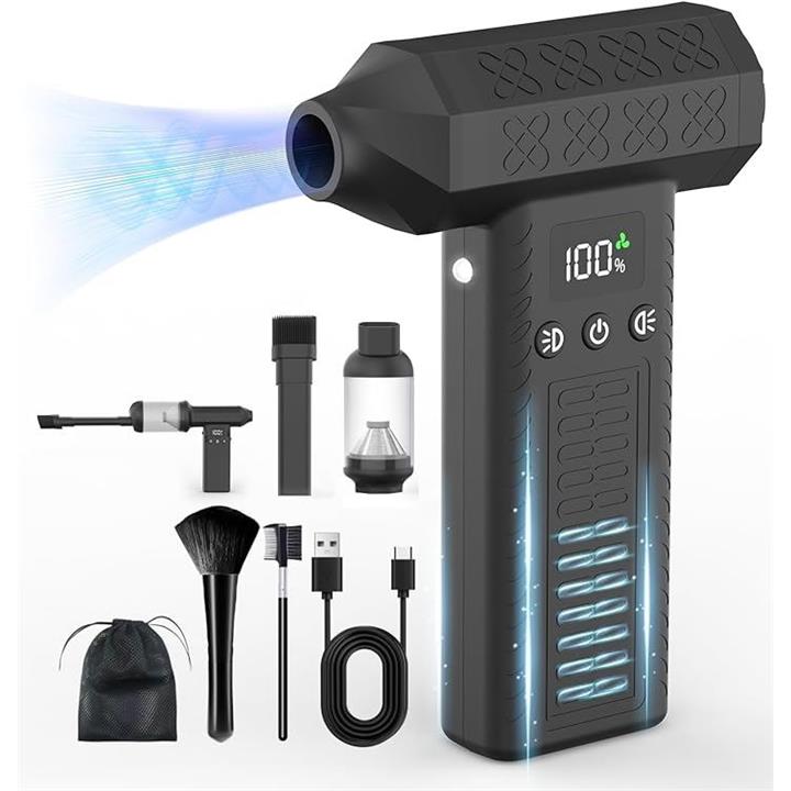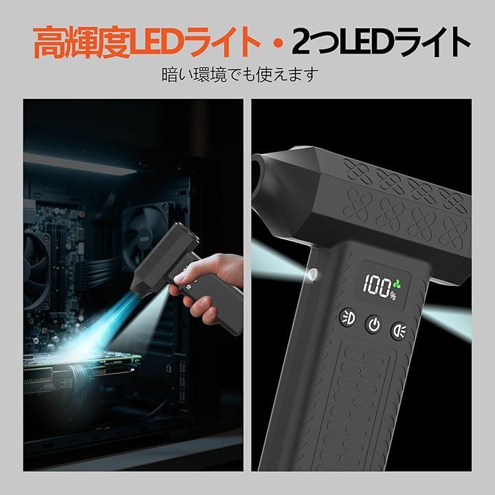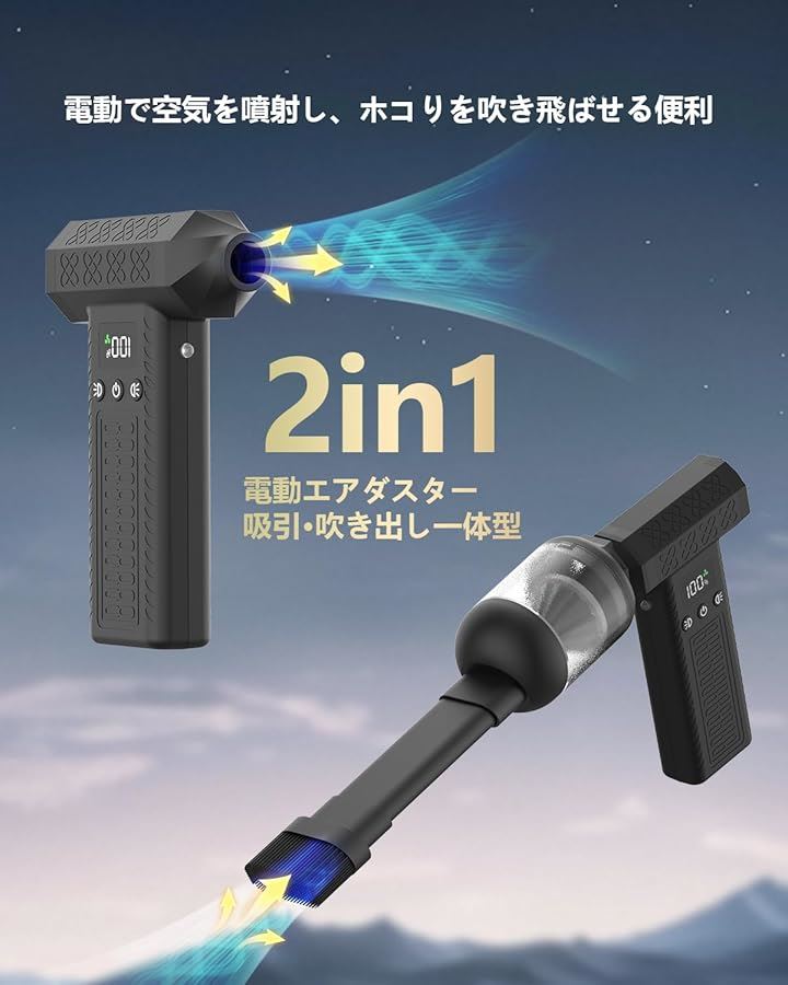 エアダスター 電動エアダスター 120m/s風速 300000RMP高速回転 ブロアー 車載掃除機 3段風量調整 洗車ブロワー 2in1 エアダスター&ハンディクリーナー ハンディ掃除機 小型掃除機 LEDライト付き 急速充電式 10000mAh