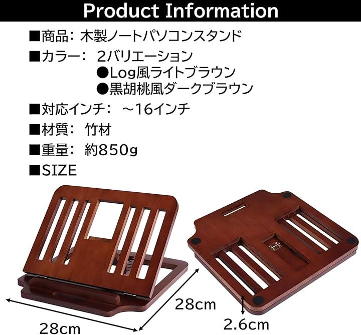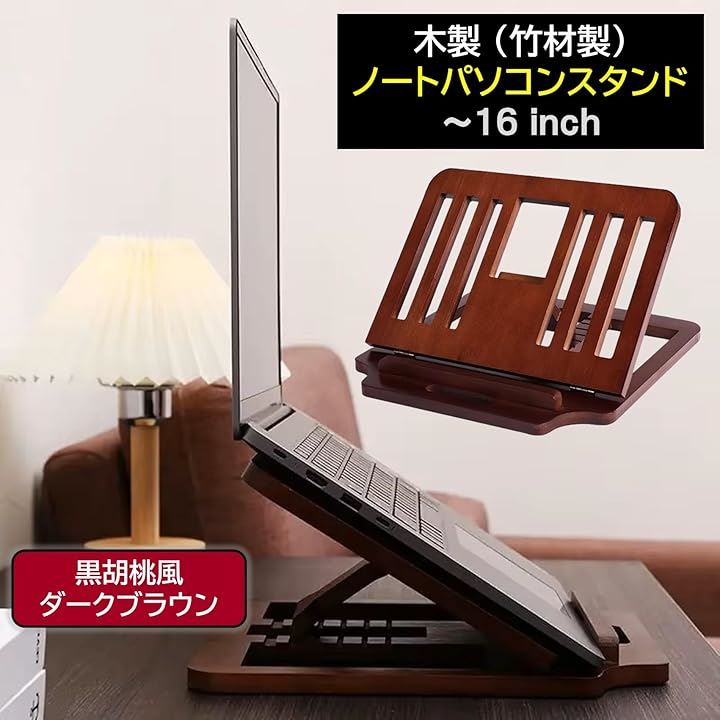 ノートパソコンスタンド pcスタンド 木製 オシャレ 6段階角度調整 ノートpc タブレット 持ち運び