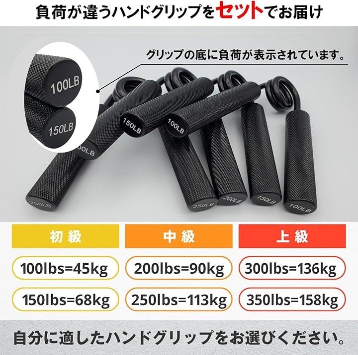 ハンドグリップ パワーグリップ ブラック 手軽に鍛える 負荷が選べる 場所を取らない 握力強化 筋トレ器具 収納袋付き 2種セット