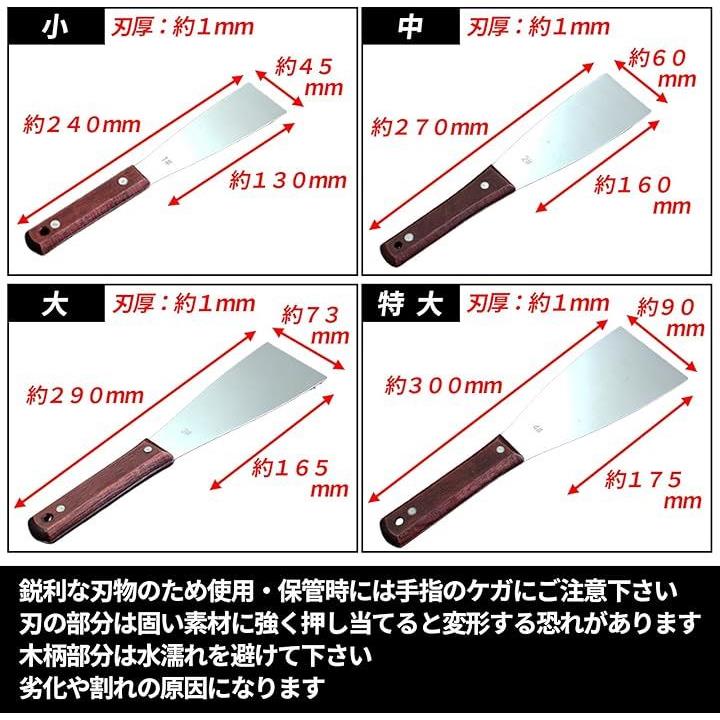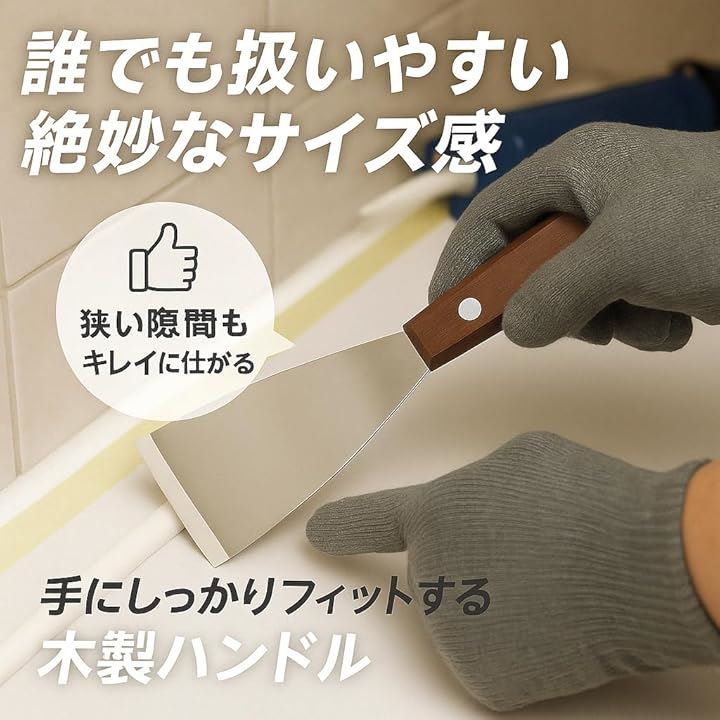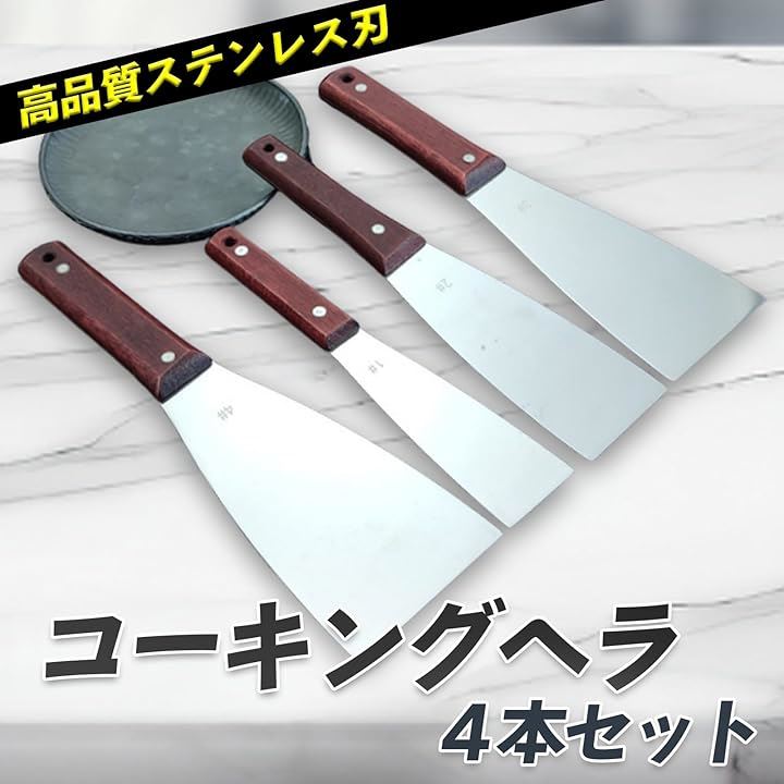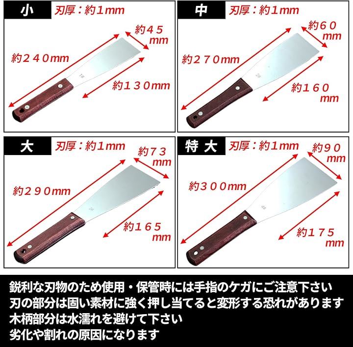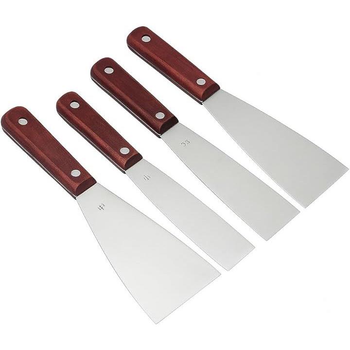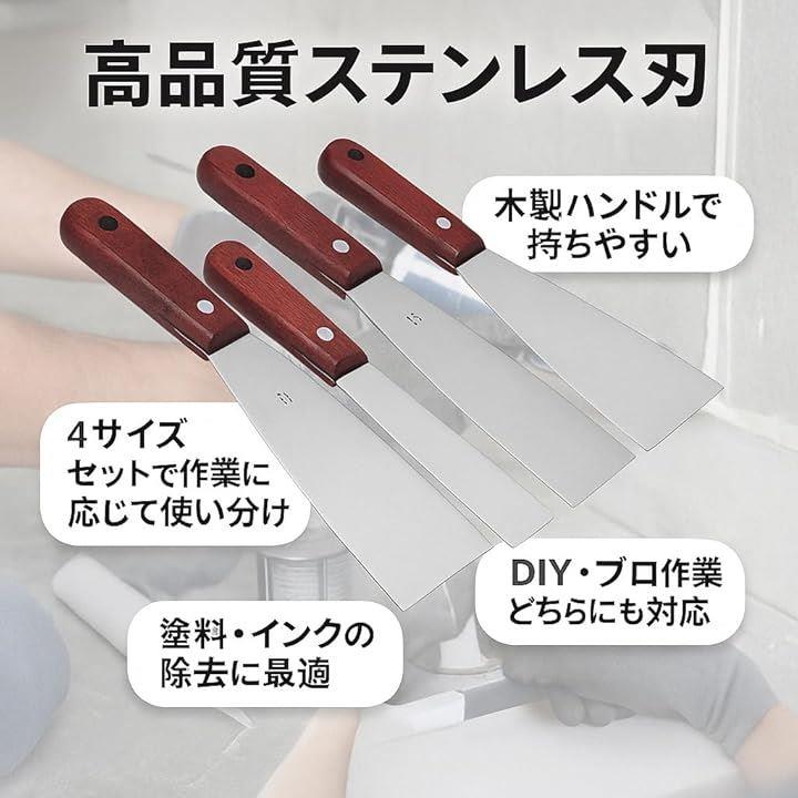 コーキング ヘラ 4本セット ステンレス刃 スクレーパー 木製ハンドル パテ 補修 DIY シーリング