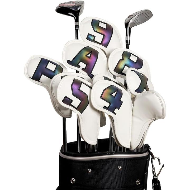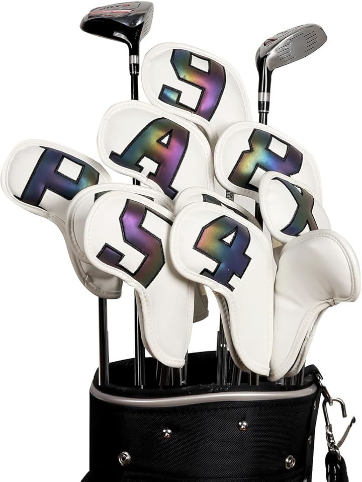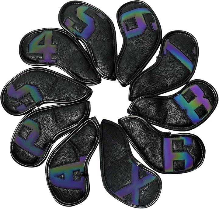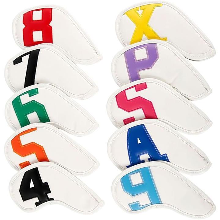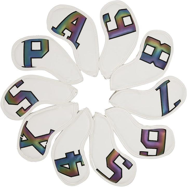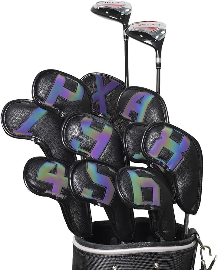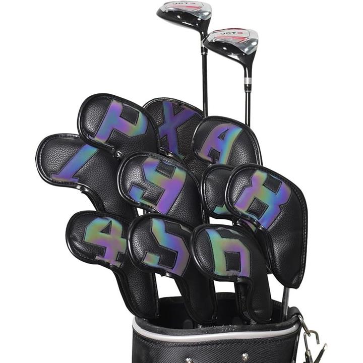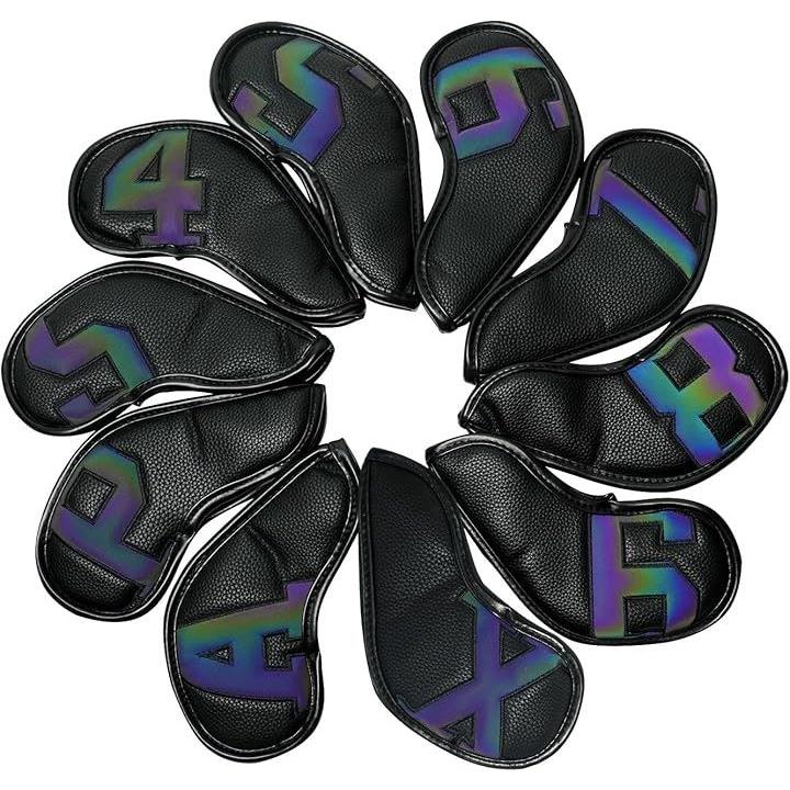 ゴルフ アイアン カバー 10点 セット クラブ ヘッド ウェッジ 夜光 合成 PU 皮革