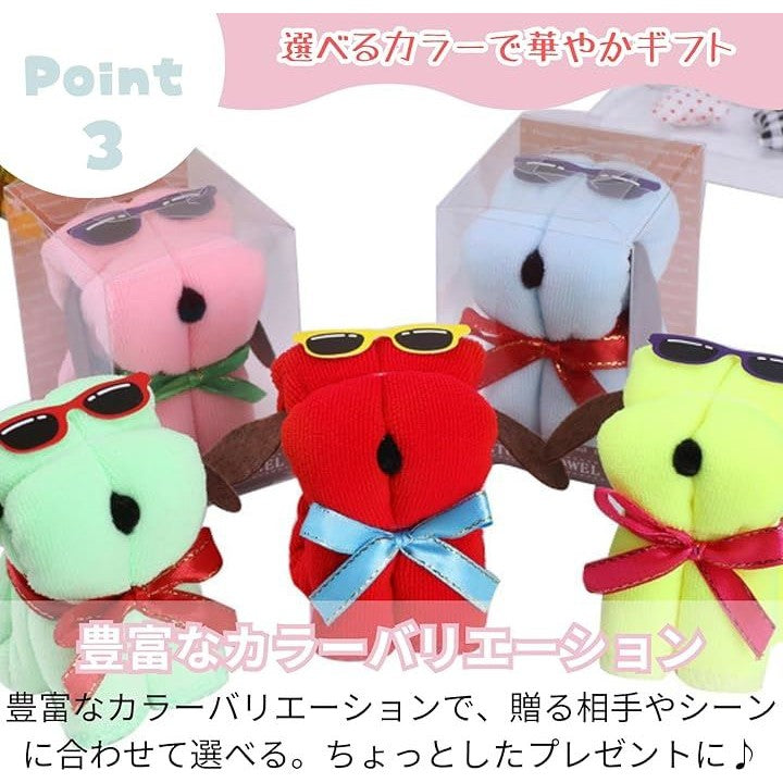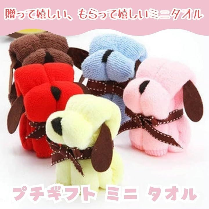 プチギフト タオル ミニタオル ハンカチ 子供 結婚式 送別会 退職 犬 色ランダム