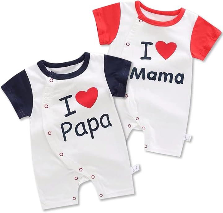 ロンパース 半袖 ベビー服 パパママ 2枚組 カバーオール 前開き 綿100% 新生児 出産祝い 誕生日 お食い初め 赤ちゃん 男の子 女の子 夏服