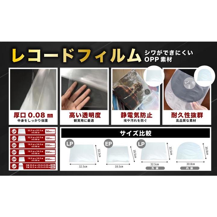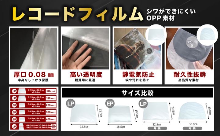 EP/LP レコード ジャケットカバー テープなし 透明 フィルム 収納