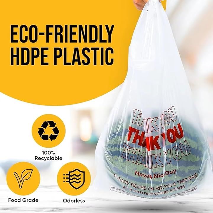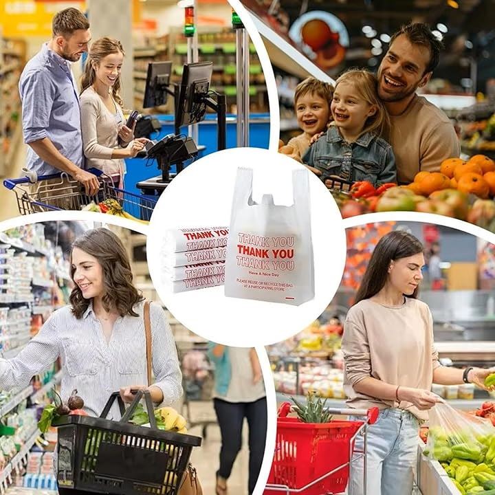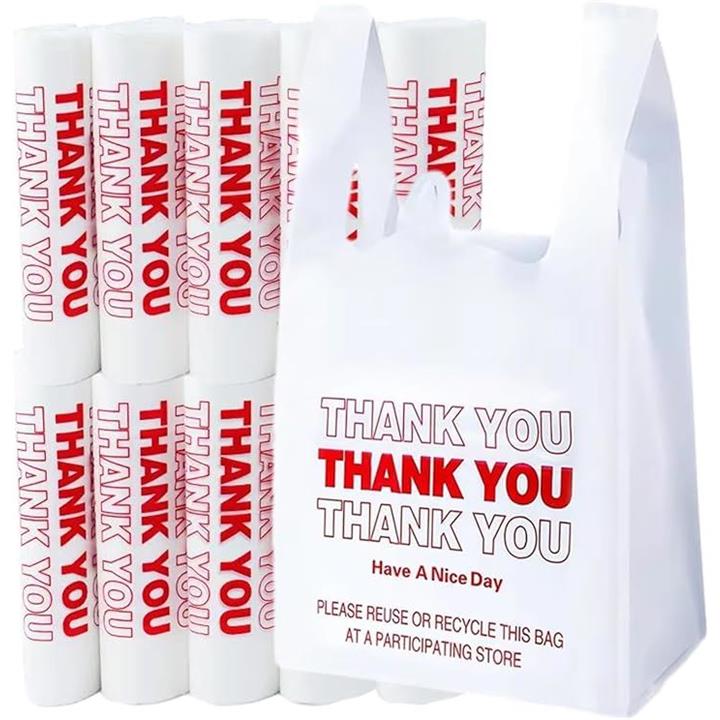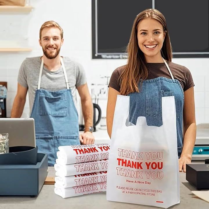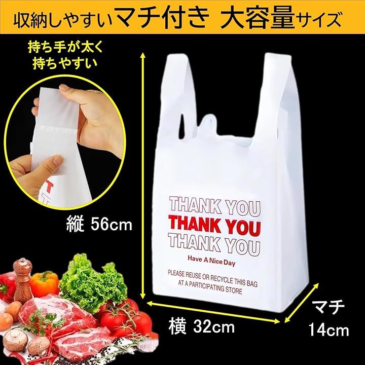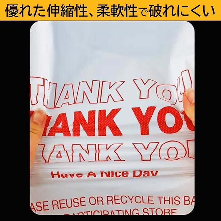 手提げ袋 可愛い レジ袋 THANK YOU 乳白 半透明 取っ手付き マチ付き ポリ袋 32x56cm