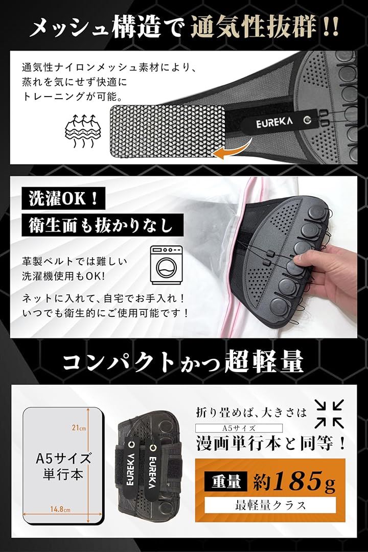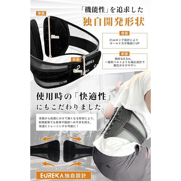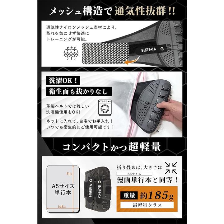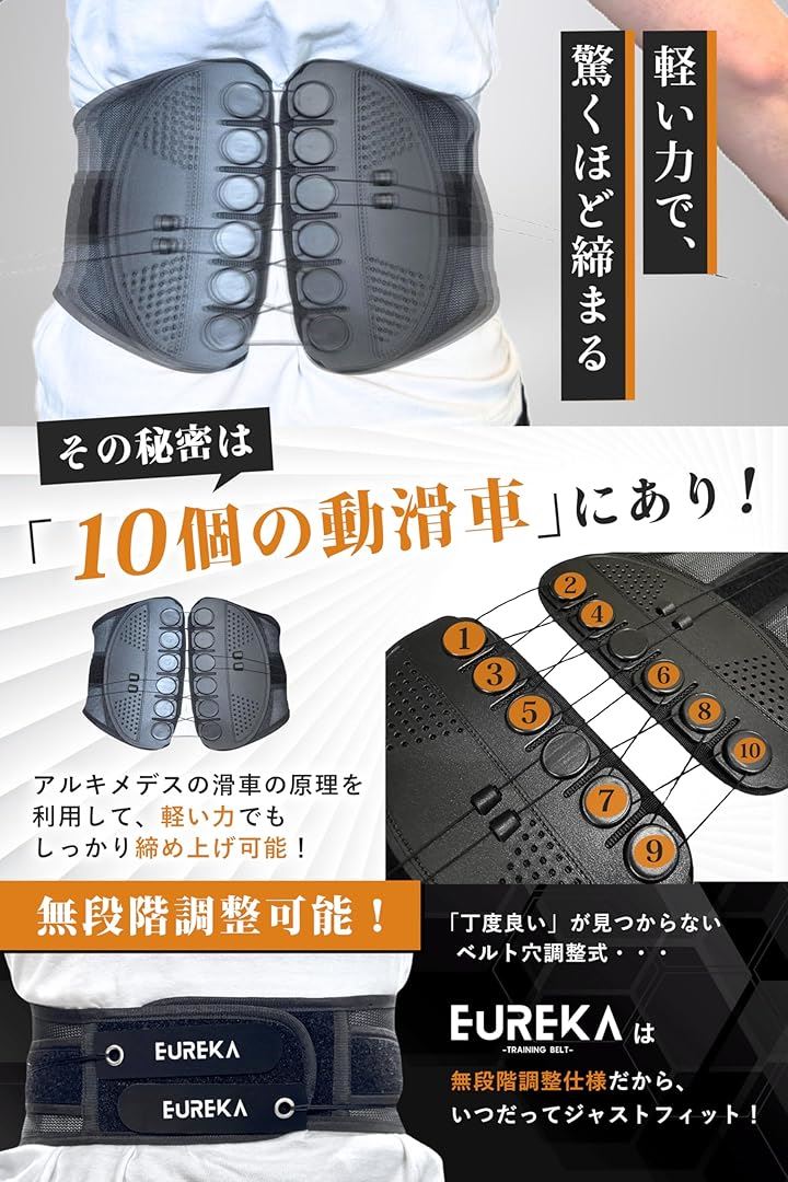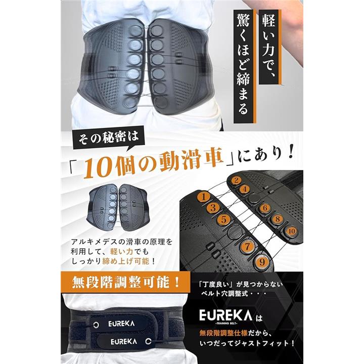 TENASGEAR 腰ベルト サポーター コルセット 骨盤補正 猫背 姿勢 メッシュ 通気性 軽い 薄型 背筋パワーベルト トレーニングベルト リフティングベルト 筋トレ 腰用サポーター スクワット デッドリフト 動滑車式 EUREKA