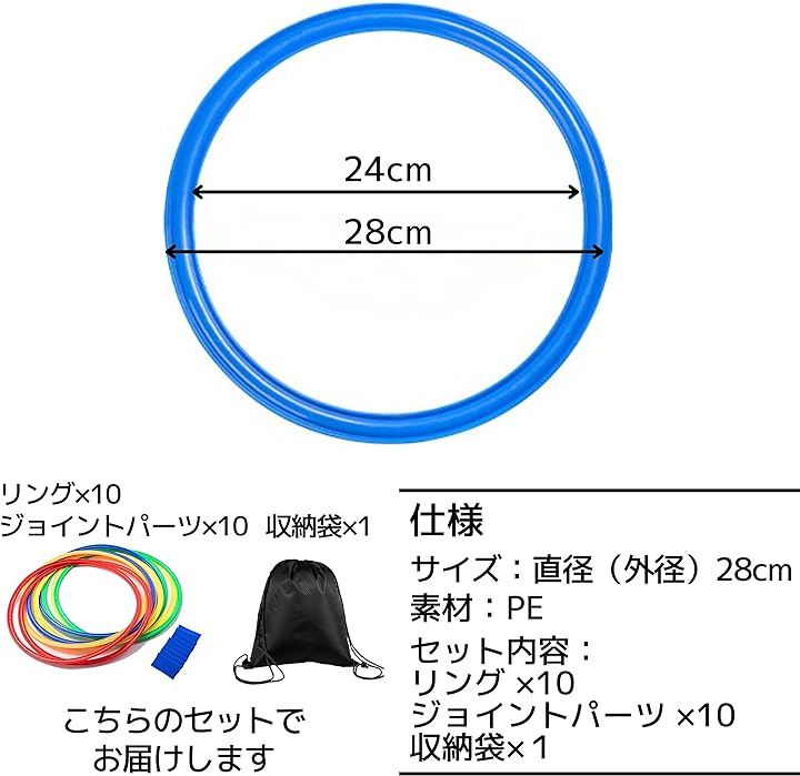 ケンケンパ リング ラダー トレーニングリング スピードリング アジリティ エクササイズ 練習 直径28cm ジョイント 収納袋付き