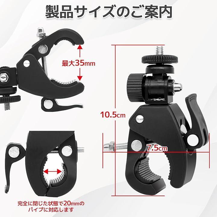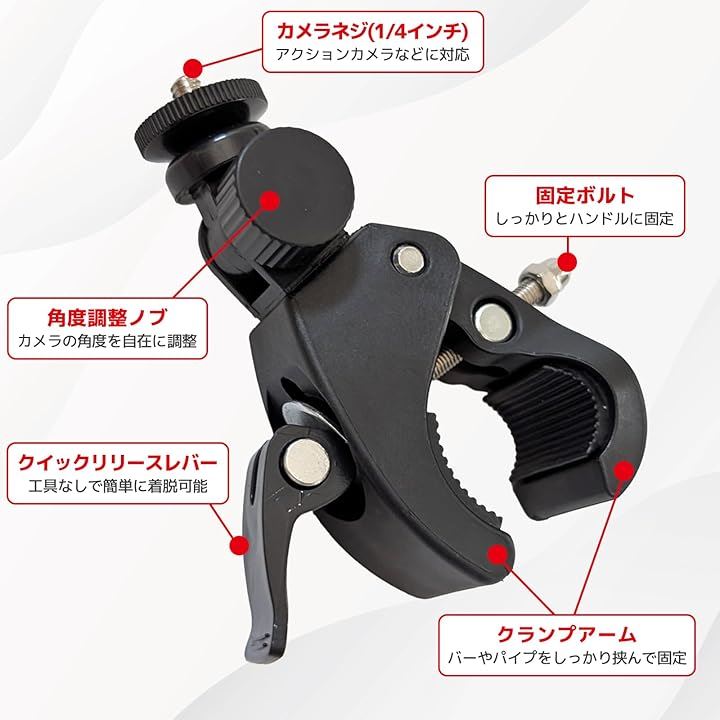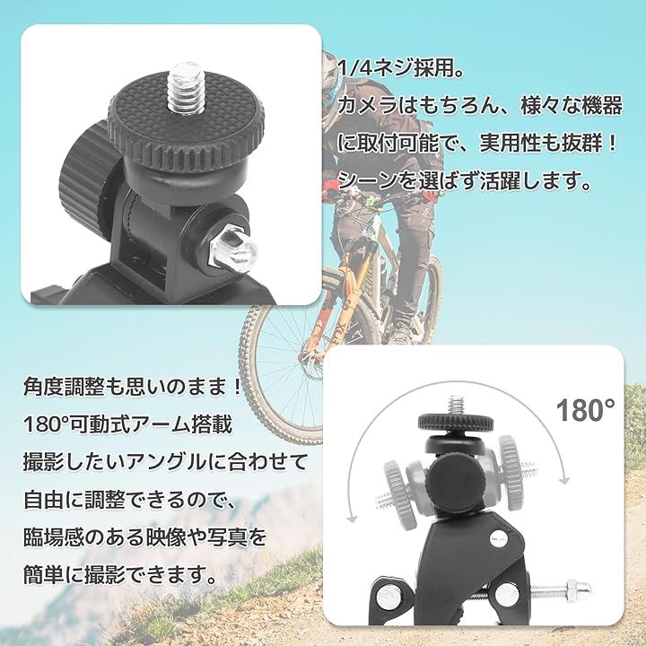 汎用 カメラマウント ハンドルバーマウント クランプ 自転車 バイク アクションカメラ デジタルカメラ デジカメ 1/4ネジ 雲台