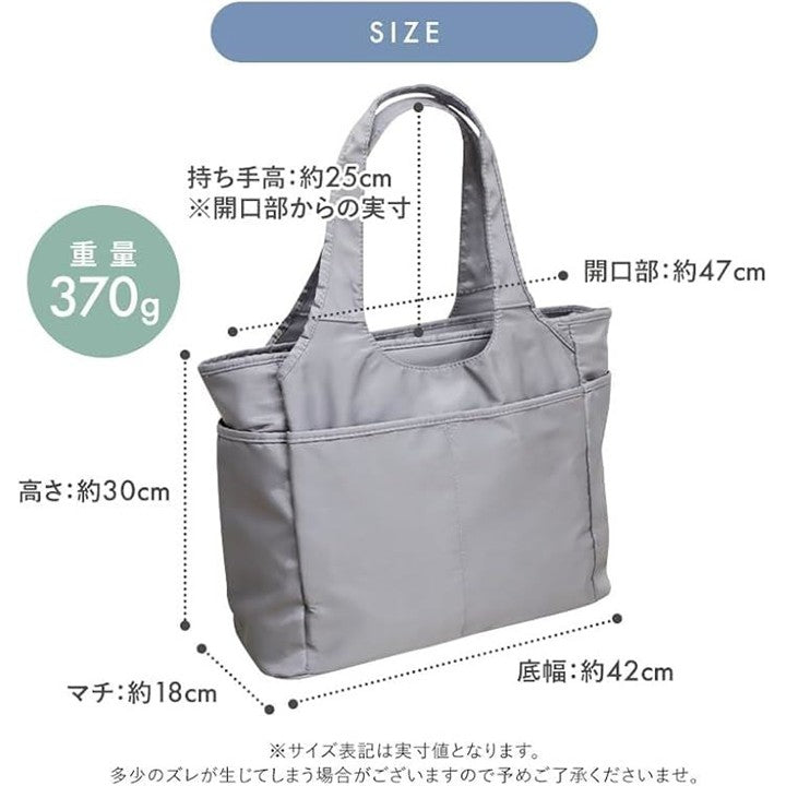 「サイズ・素材」 横:約42cm/縦:約30cm/マチ:約18cm/持ち手:約25cm/素材:撥水加工ナイロン。
