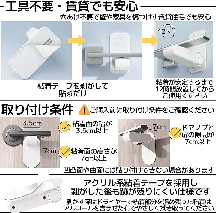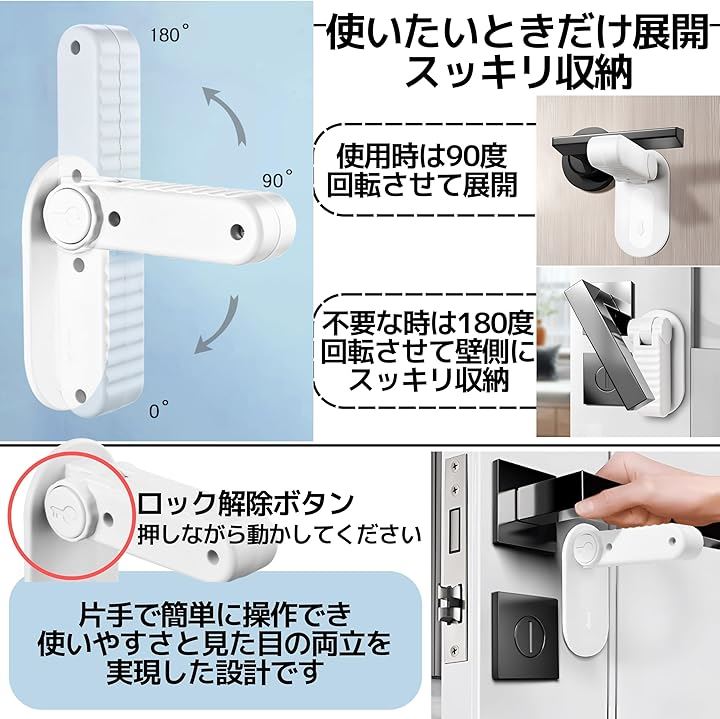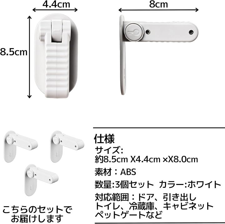 安全ロック チャイルドロック ペット脱走防止 徘徊対策 工具不要 白 3個セット