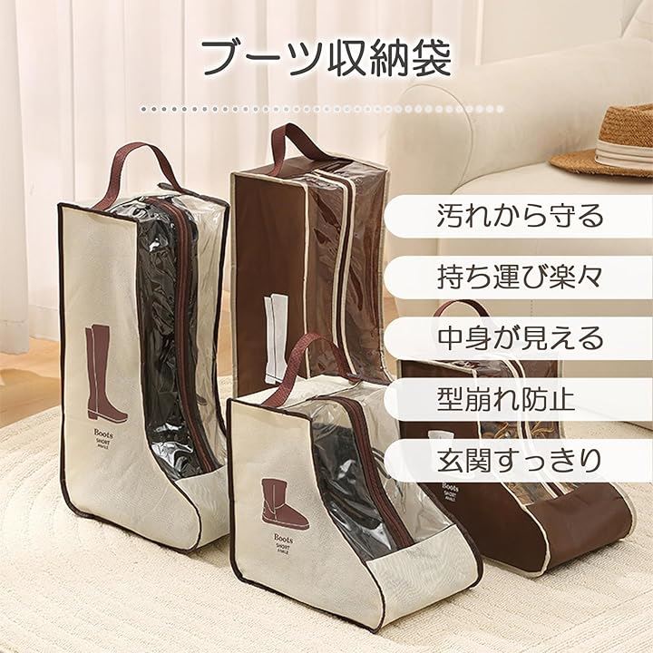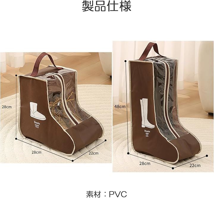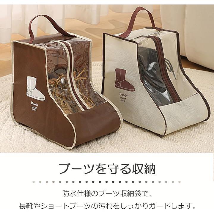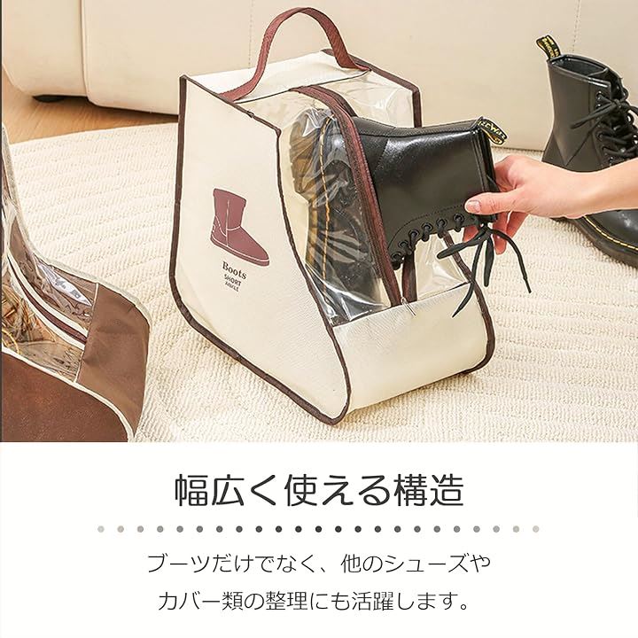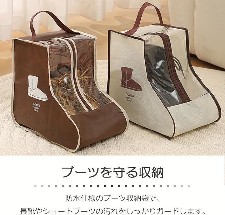 ブーツ 収納 ブーツカバー シューズカバー 防水 長靴ケース ブーツ収納袋 シューズカバー袋 透明窓付き 持ち手付き ショートブーツ