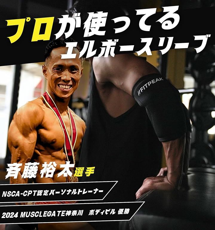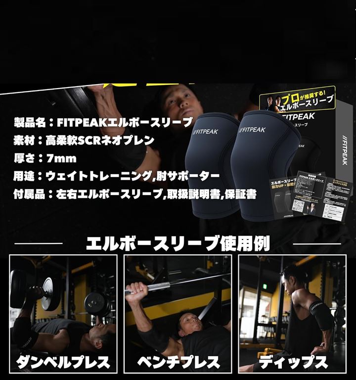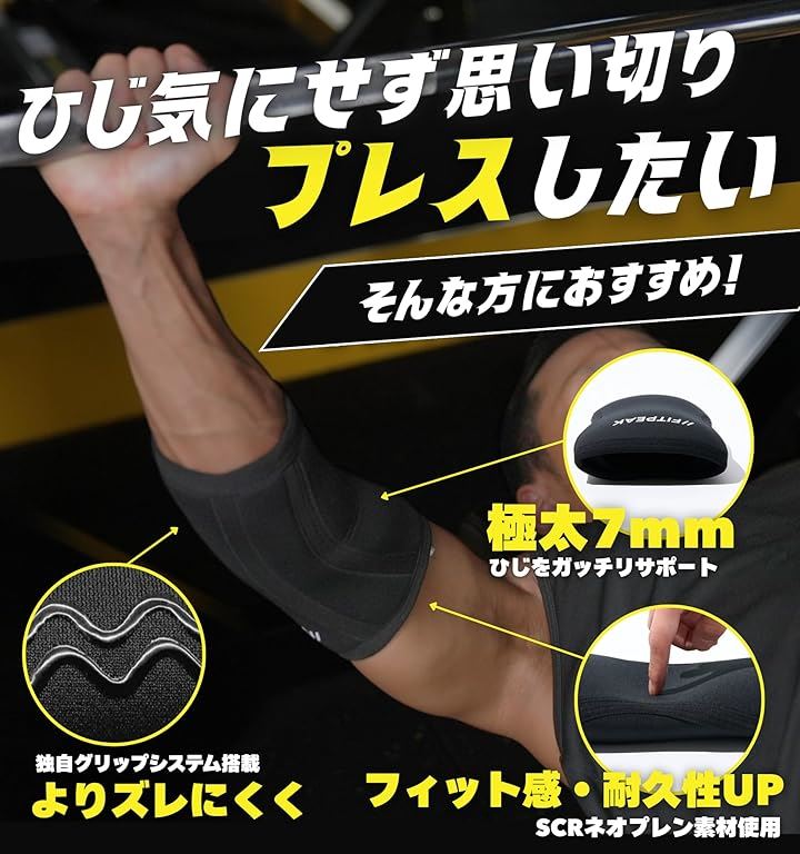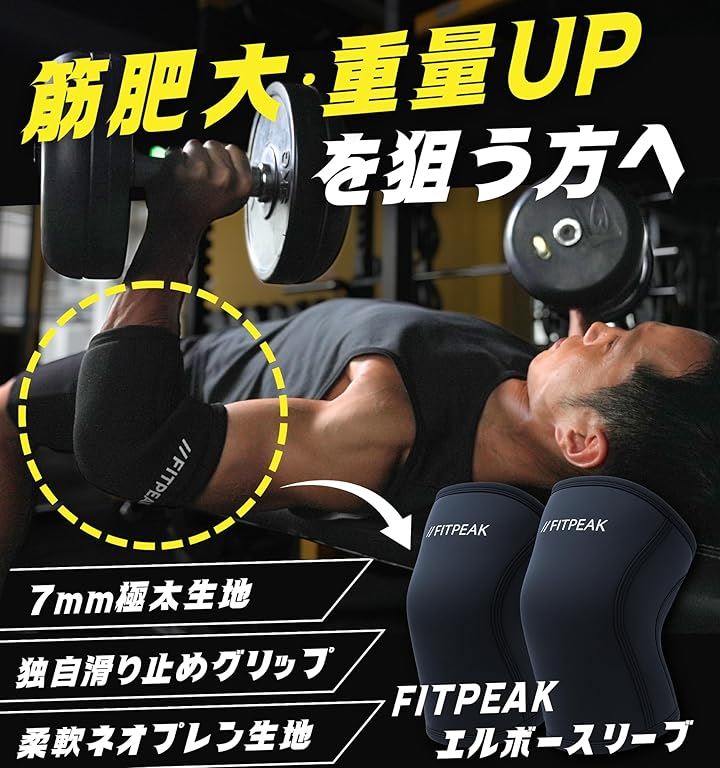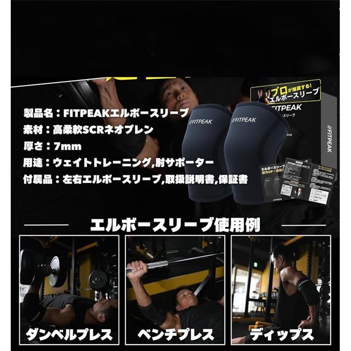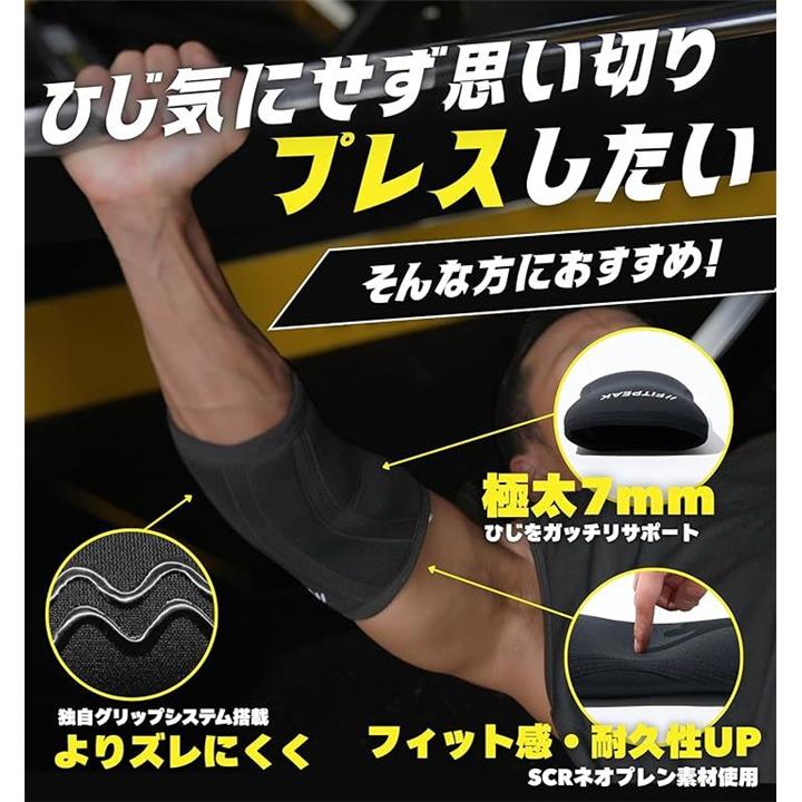 エルボースリーブ 独自の滑り止めグリップ搭載肘 サポーター 筋トレ ウェイトリフティング