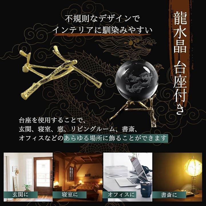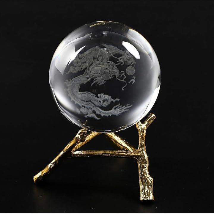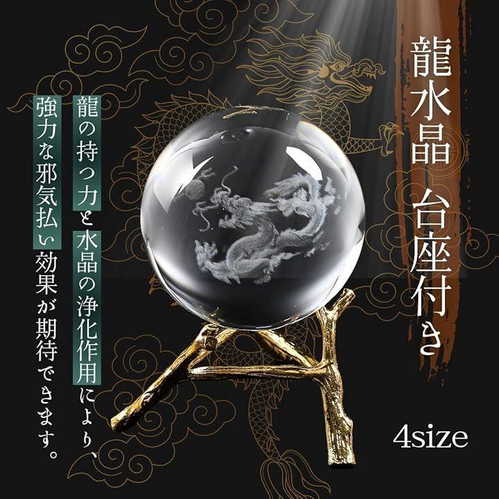 龍 水晶 玉 ヒーリング 風水 置物 クリスタル 開運 金運 縁起物 台座付き