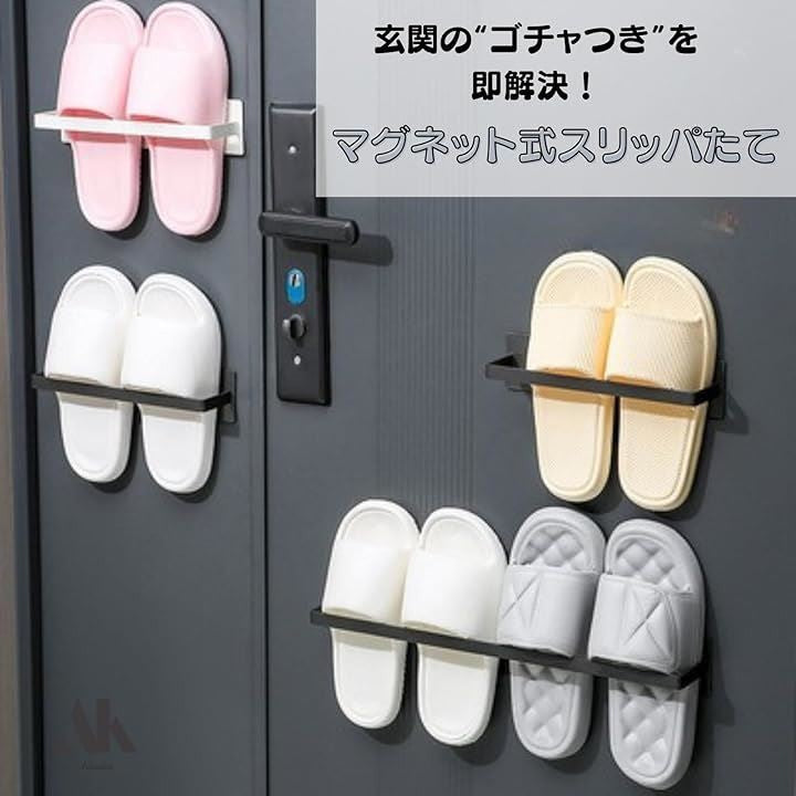 スリッパたて マグネット式 壁掛け収納 磁石固定 穴あけ不要 玄関 室内 省スペース ホワイト