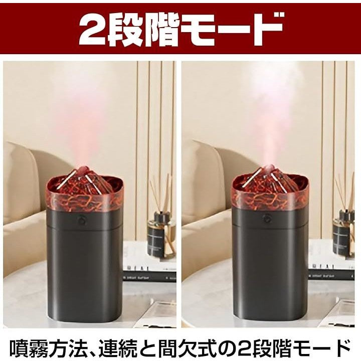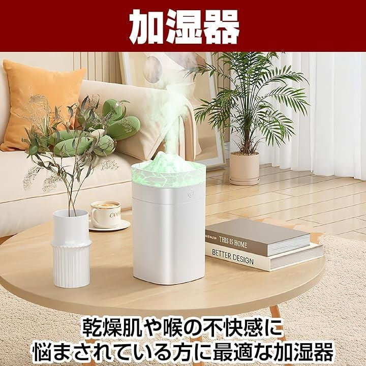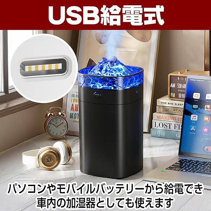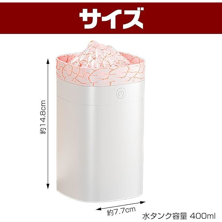 加湿器 火山亀裂型 超音波 ポータブル 400ml USB給電式 LEDライト 乾燥 ドライ 静音 寝室 リビング