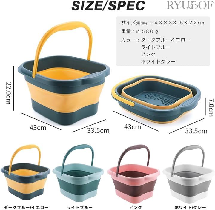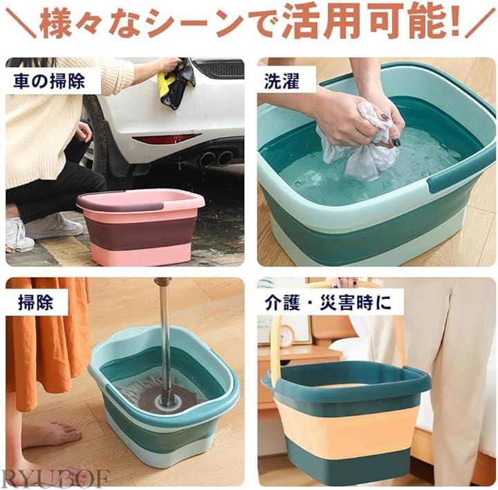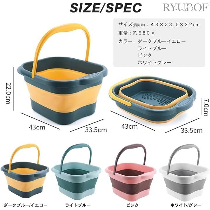 RYUBOF足湯 折り畳みバケツ フットバス 保温 折りたたみ 深め 軽量 アウトドア 13リットル