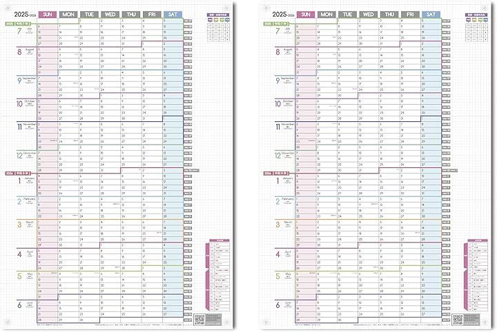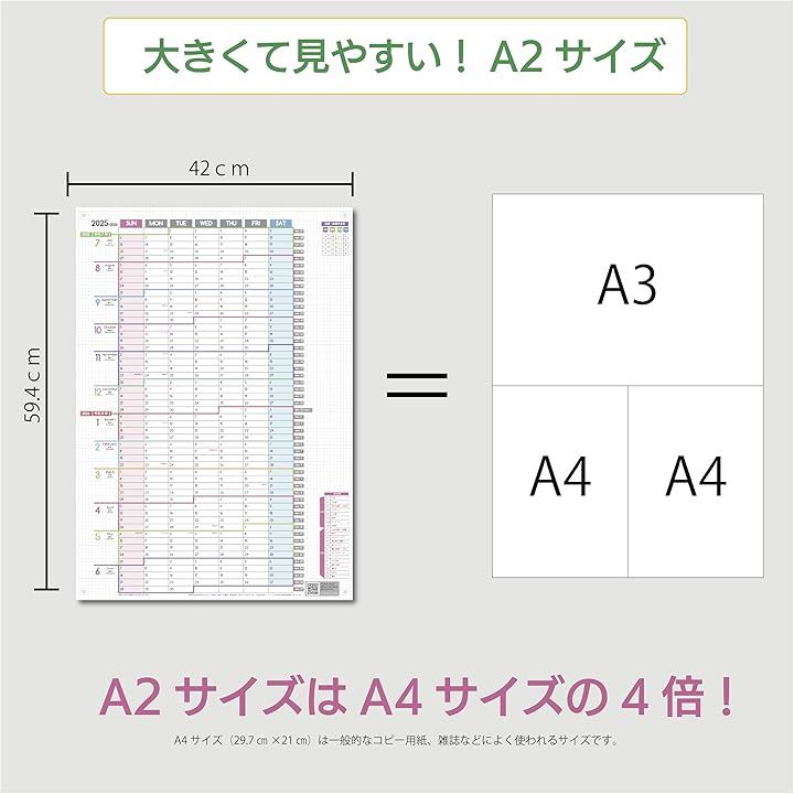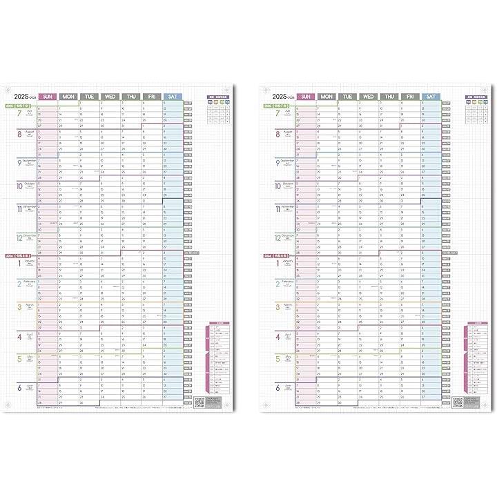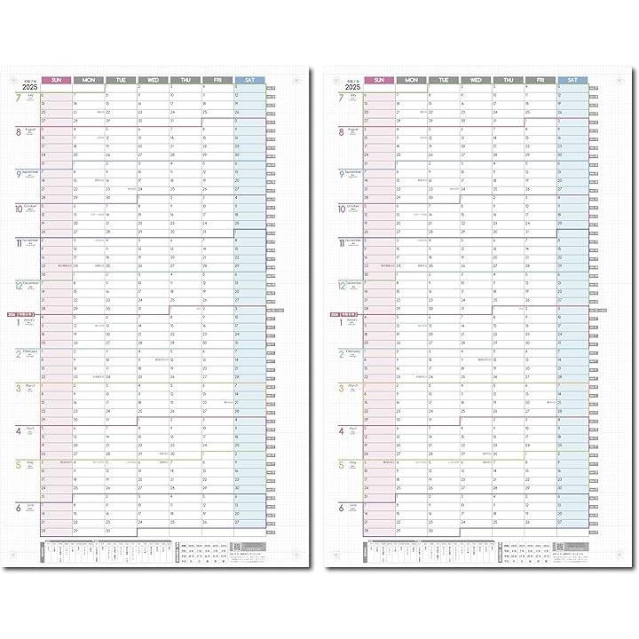 1年連結カレンダー ポスター 2枚セット 2025年 7月始まり 日曜始まり 大きい 壁掛け 令和7年 1Y-2525-07SUN