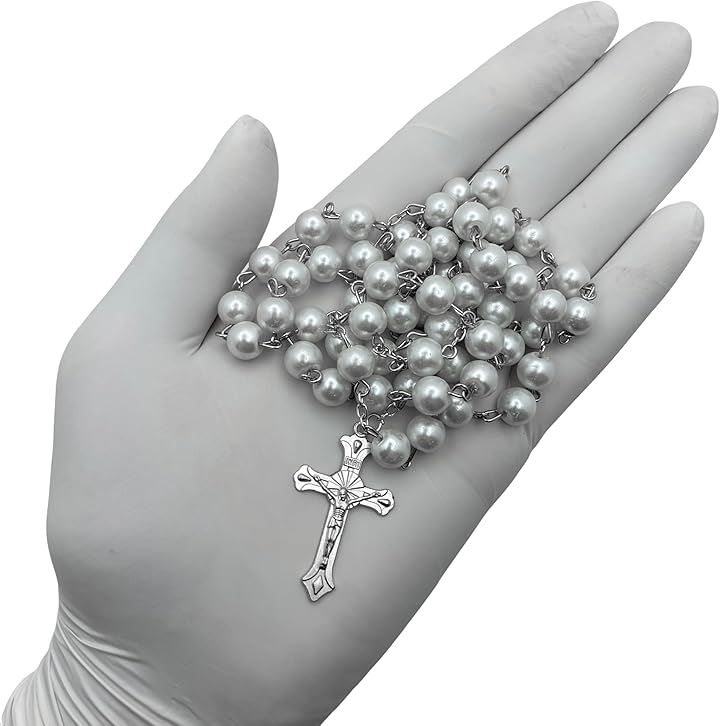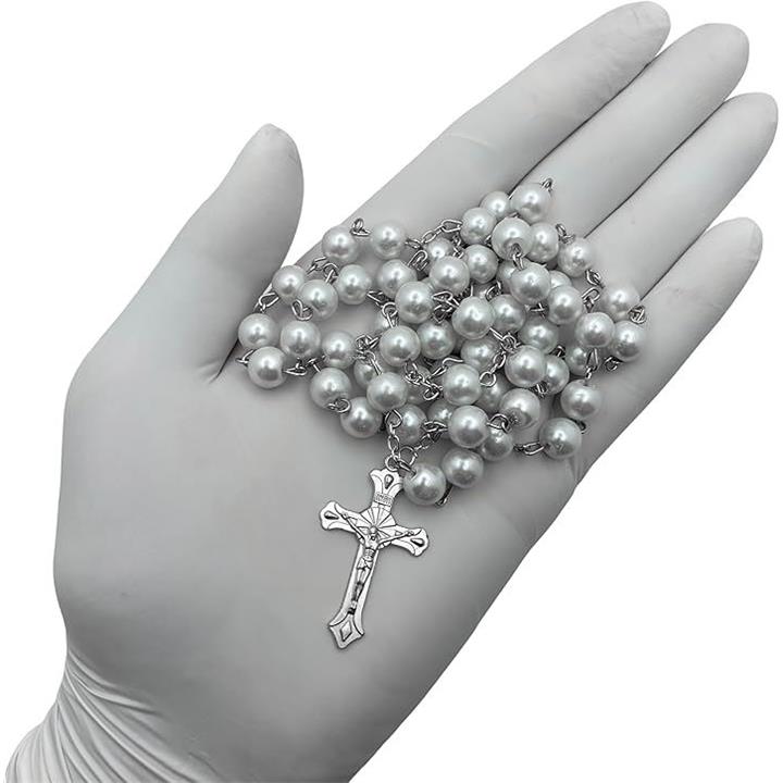 ロザリオ ハンドメイド 樹脂パール 8mm 50cm ホワイトE990