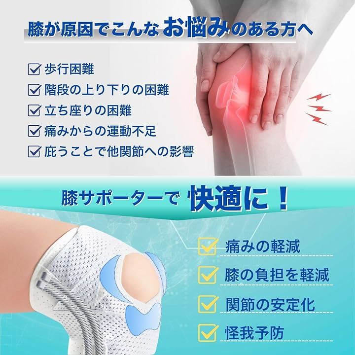 膝の負担を軽減しながら、毎日の動作をしっかりサポートする頼れる一枚です。