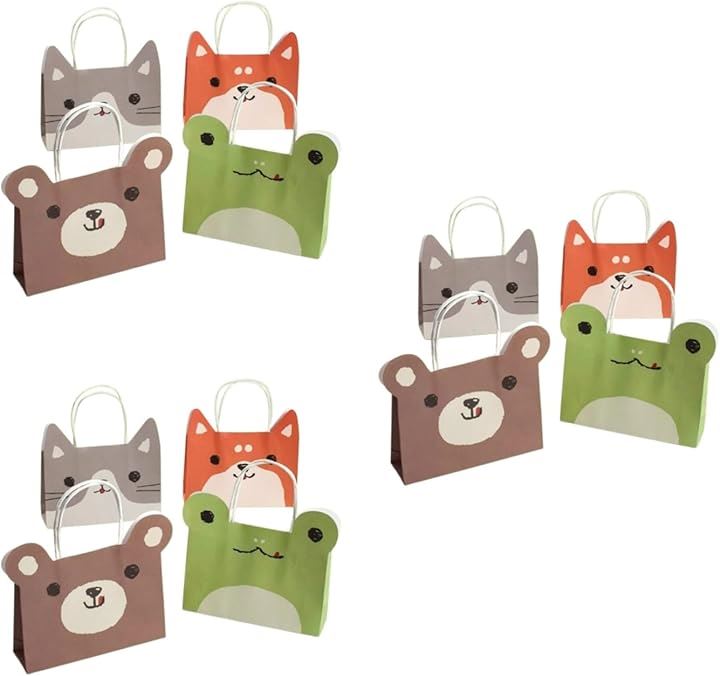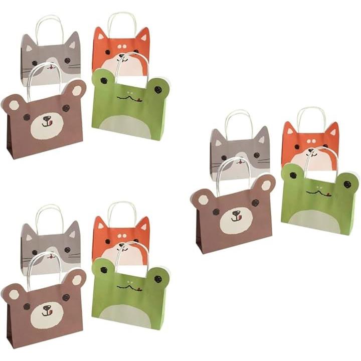 ラッピング袋 アニマルフェイス 手提げ袋 紙袋 可愛い ギフト プレゼント 12個セット