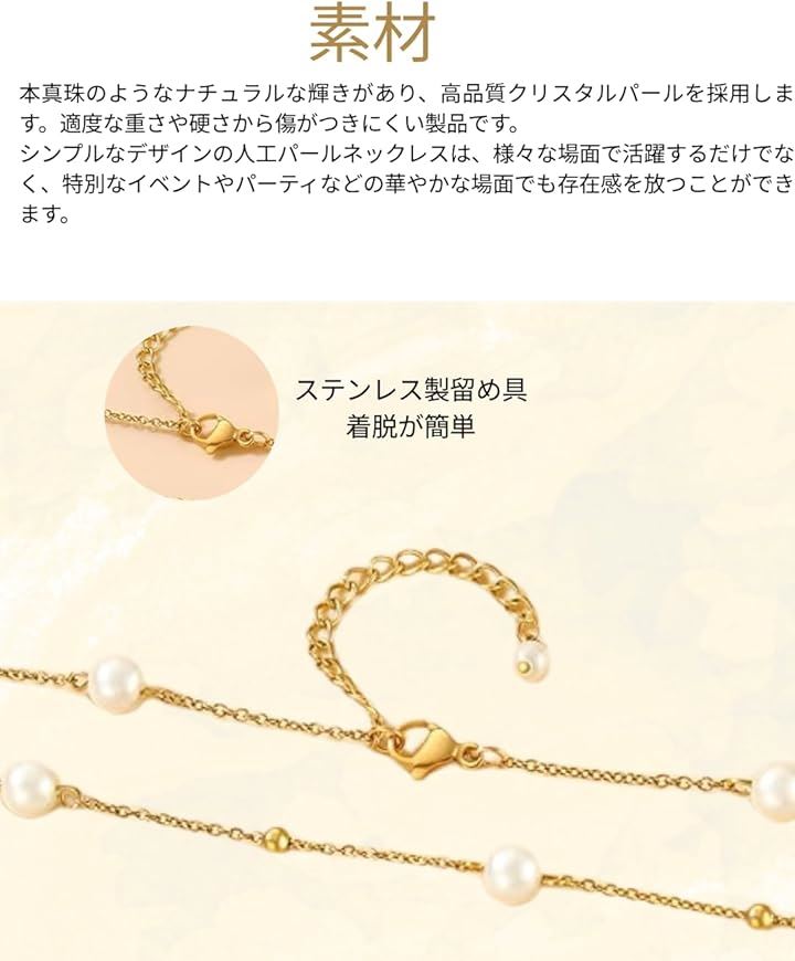パールネックレス レディース 人工真珠 チェーン 人工パール シンプル アクセサリー 冠婚葬祭 結婚式 パーティー 母の日プレゼント