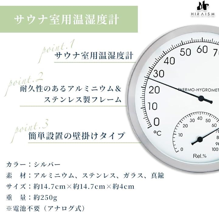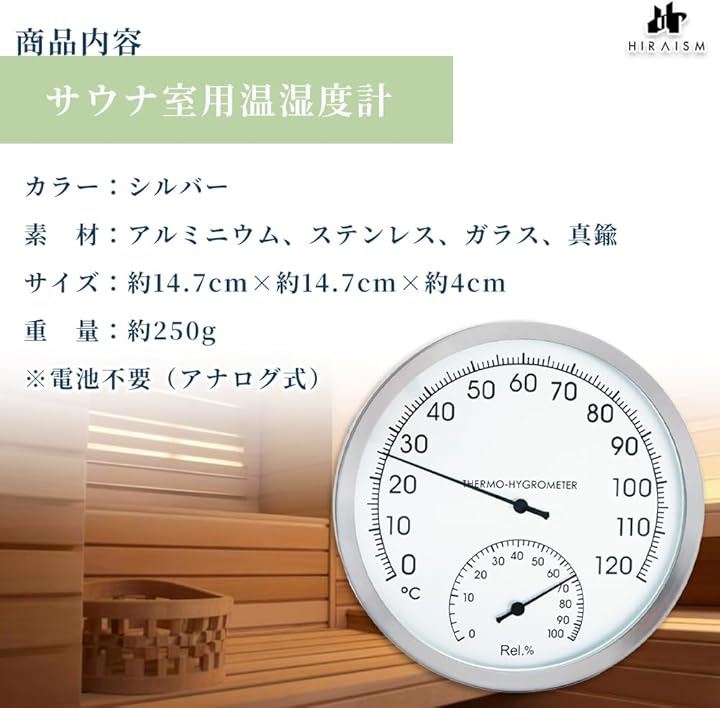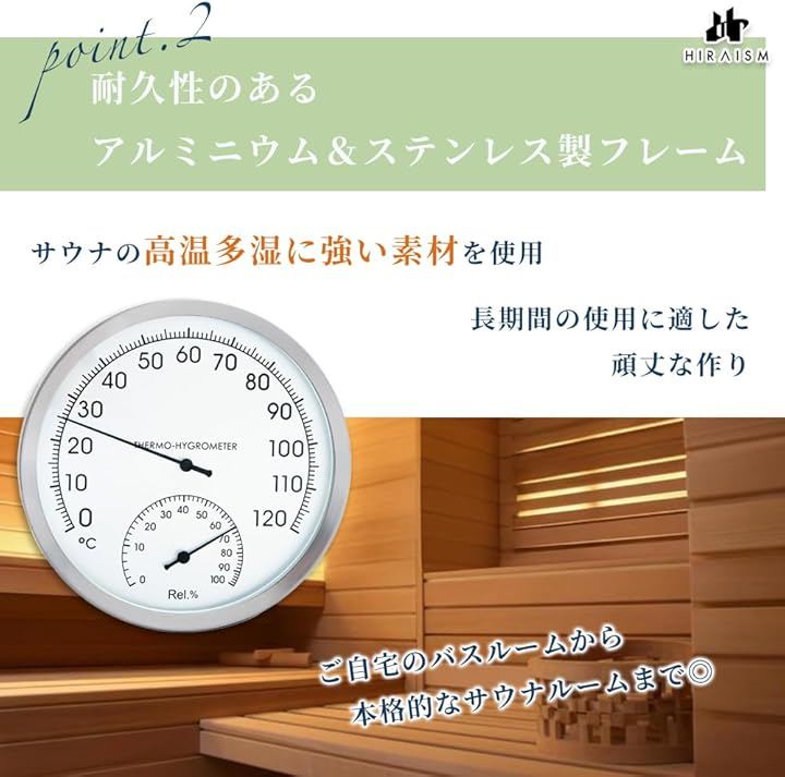 温湿度計 アナログ 壁掛け サウナ 浴室 高精度 耐高温 おしゃれ 見やすいデザイン インテリア