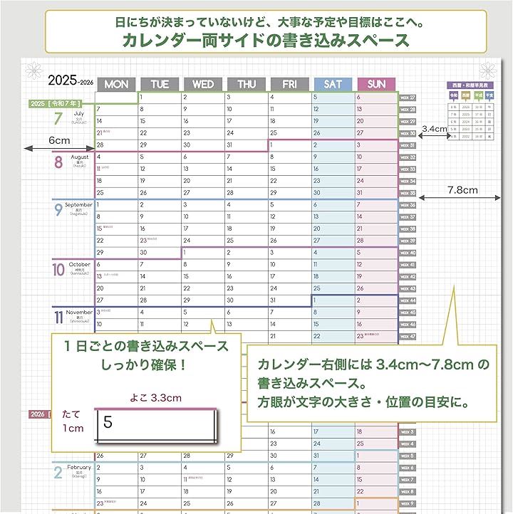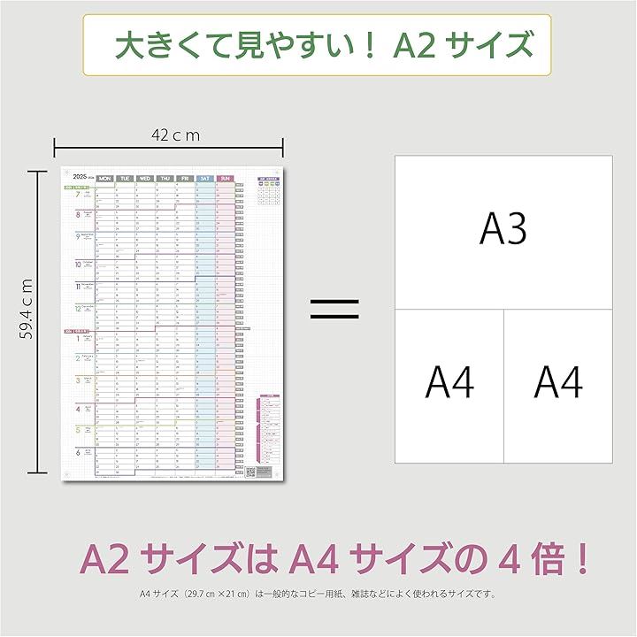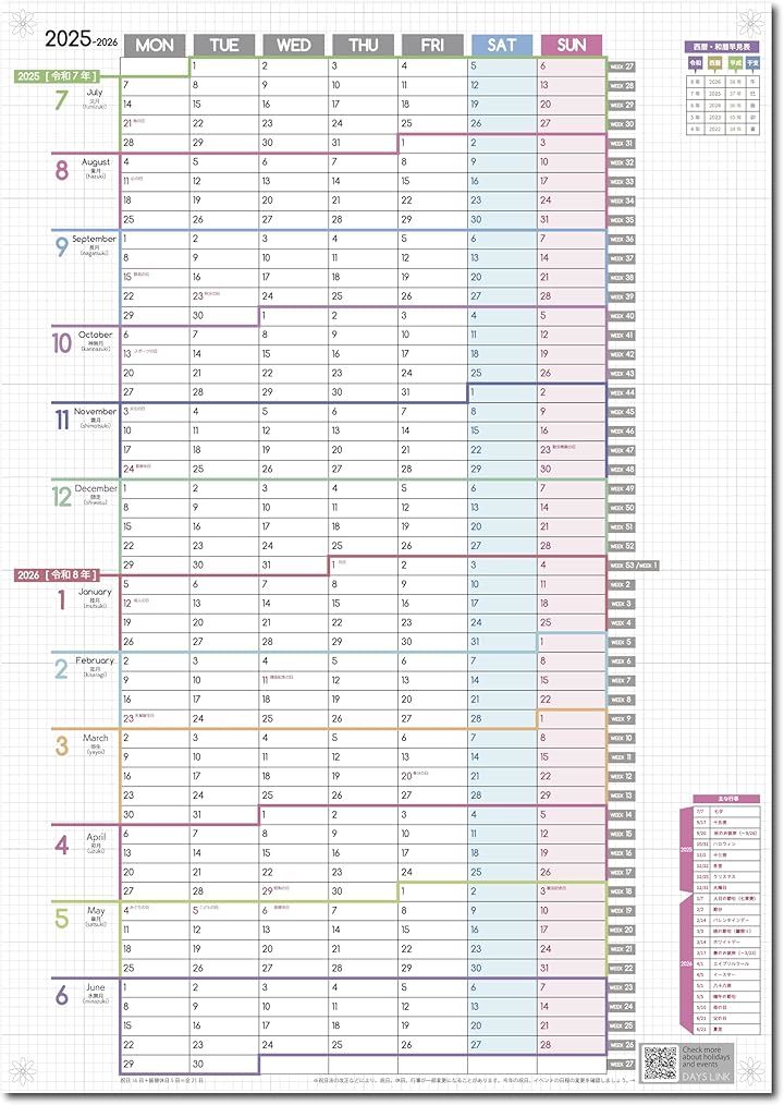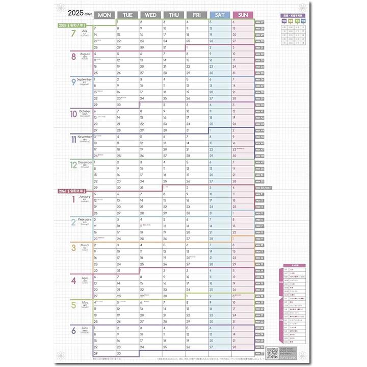 1年連結カレンダー ポスター 1枚 2025年 7月始まり 月曜始まり 大きい 壁掛け 令和7年 1Y-25-07MON