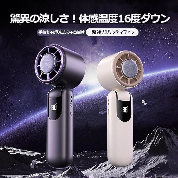 -16℃冷感x風のダブル冷却ハンディファン 冷却プレート搭載 携帯扇風機 冷却ファン 手持ち扇風機 強力風量 静音 小型 Type-C USB充電式 LED温度表示