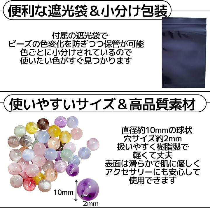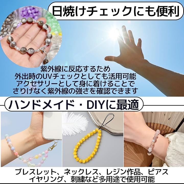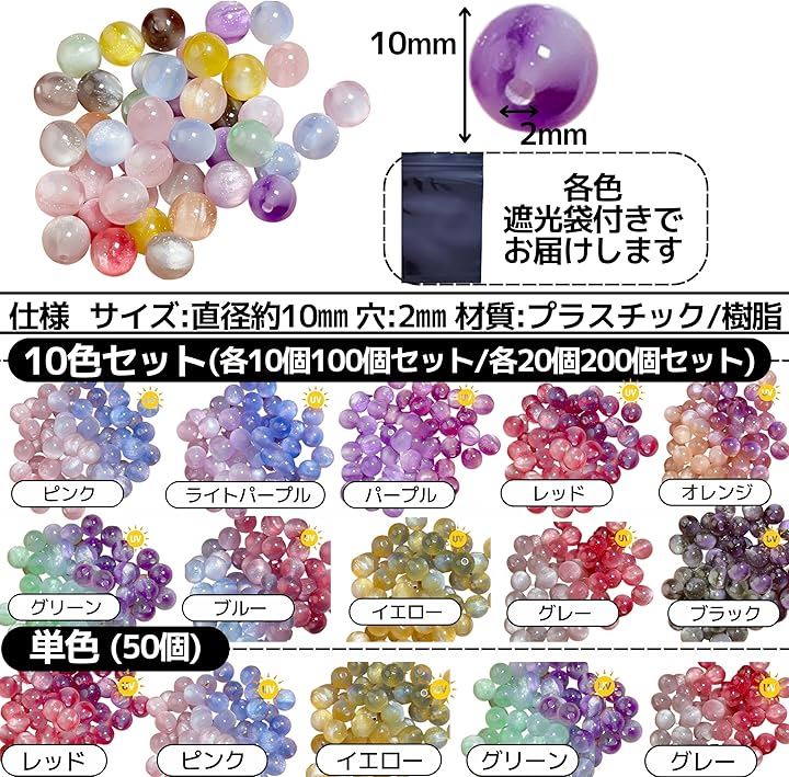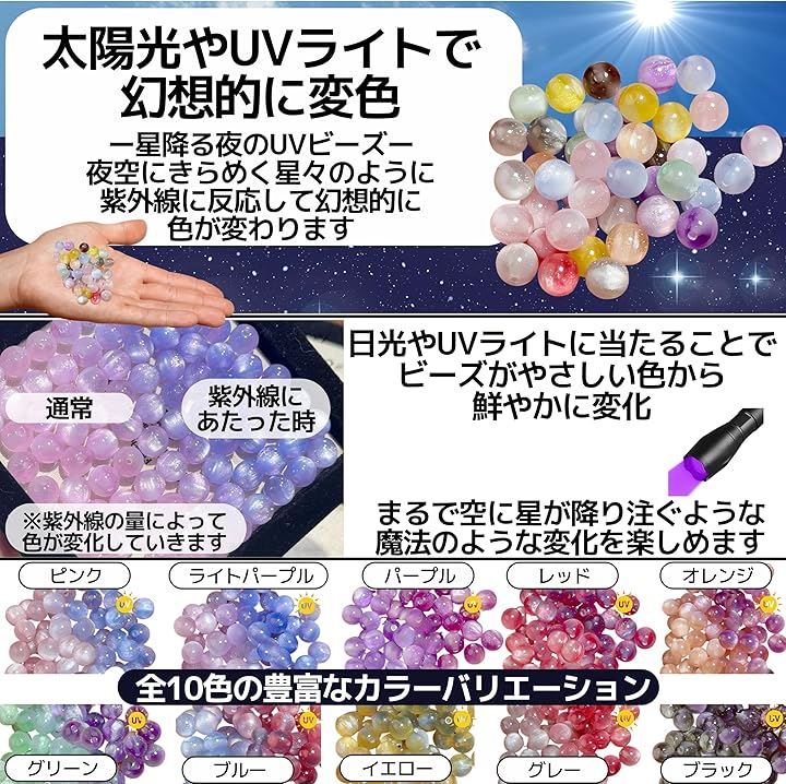 星降る夜のUVビーズ UVチェック UVチェッカー 太陽光線やブラックライトで色が変わる 遮光袋付 色ごとに小分け 10mm