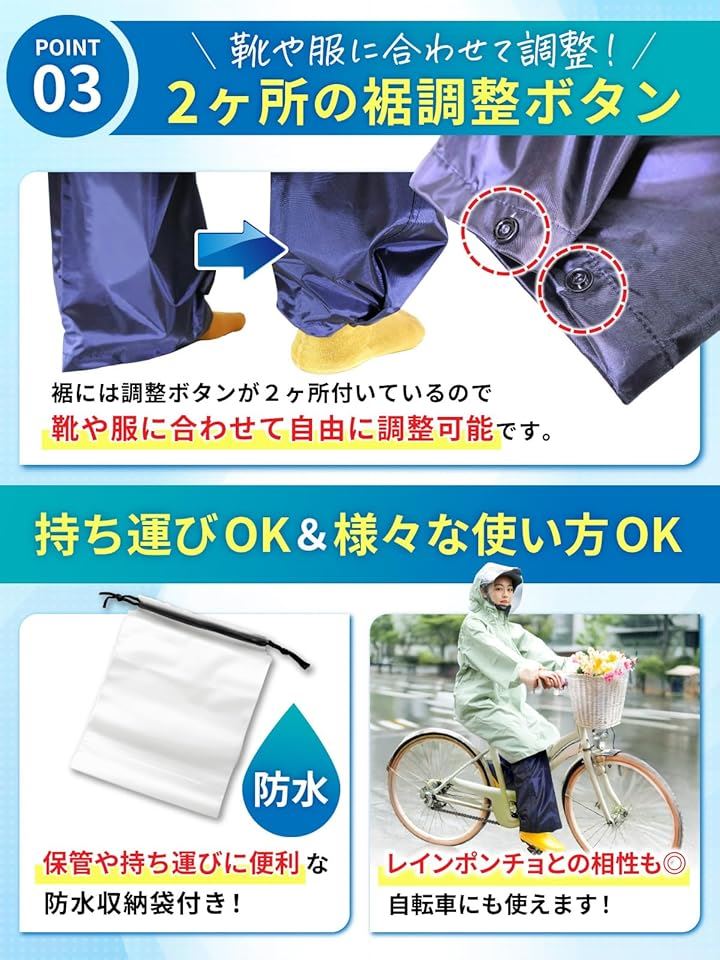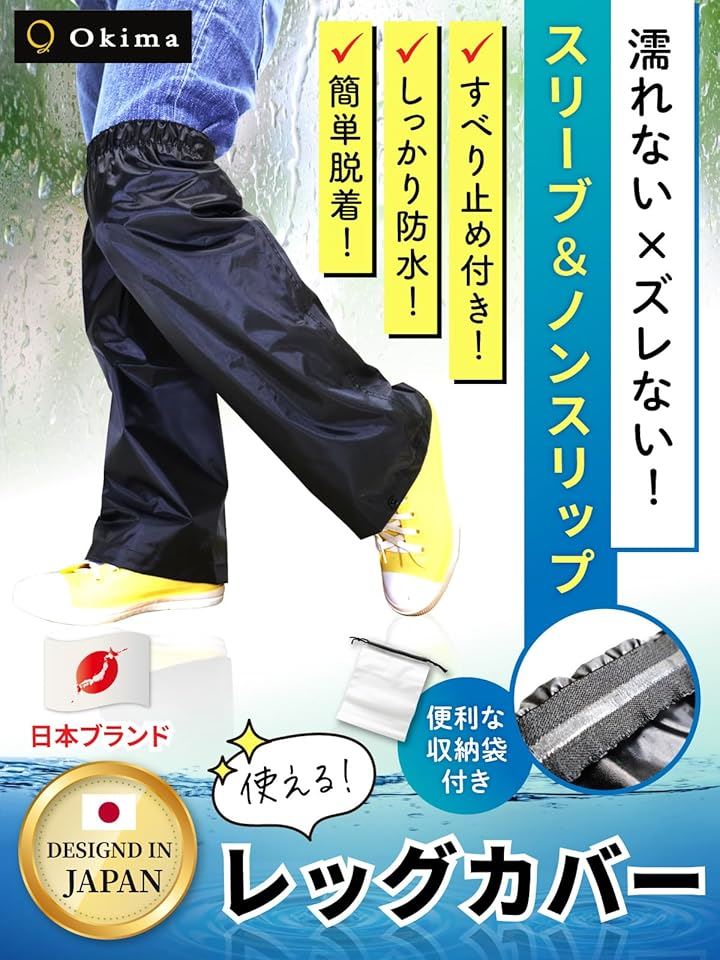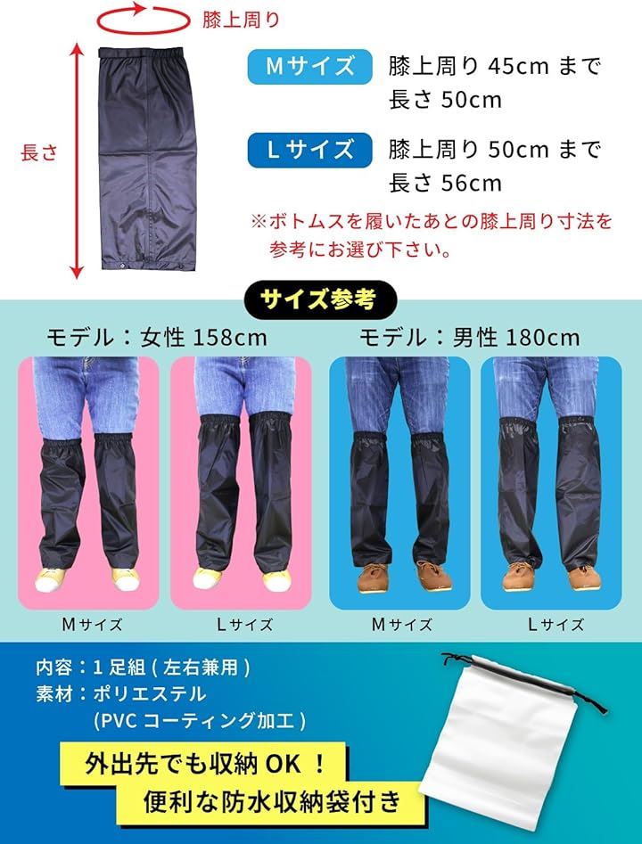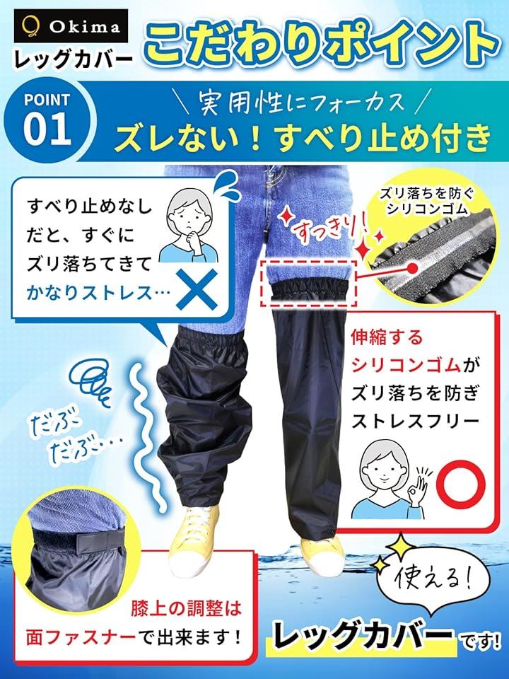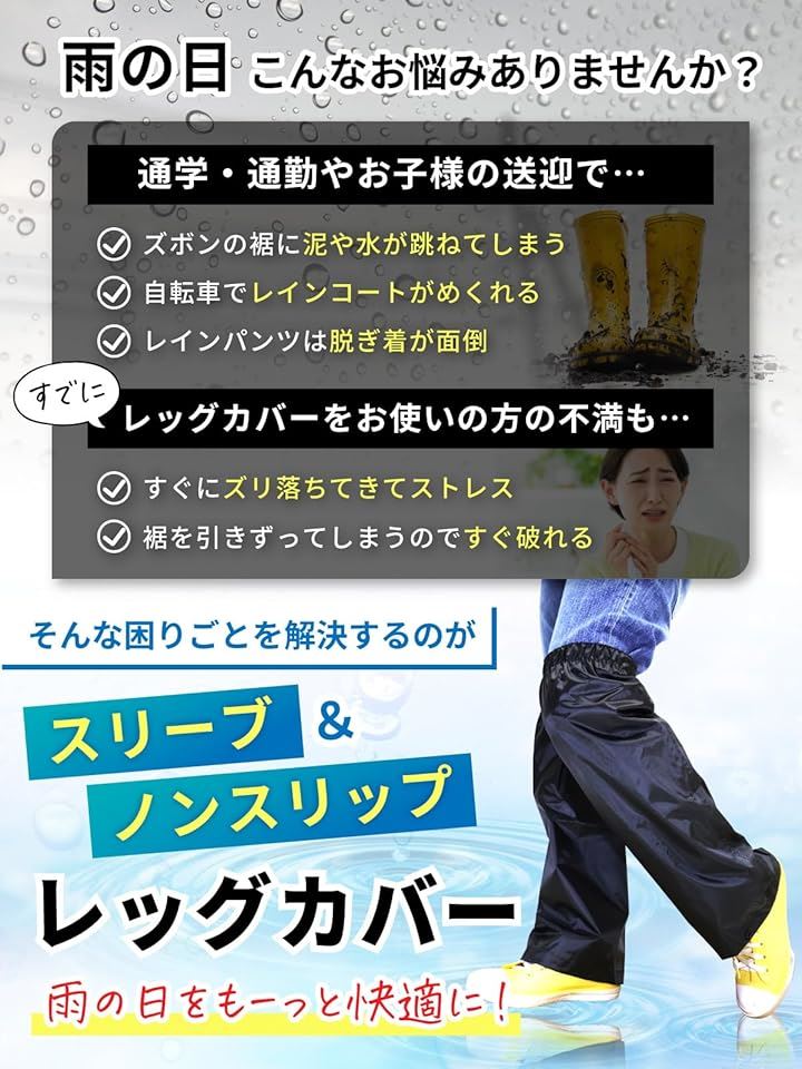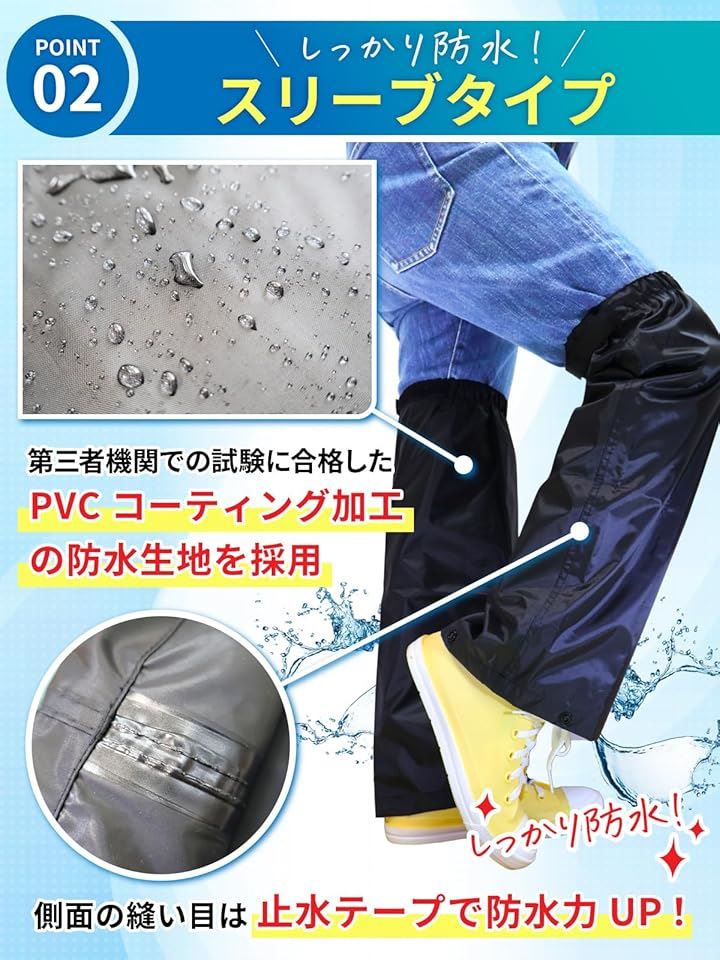 レッグカバー スベり止め付&濡れない 雨 防水 足カバー レインカバー 靴 裾調整 1足組
