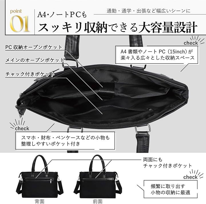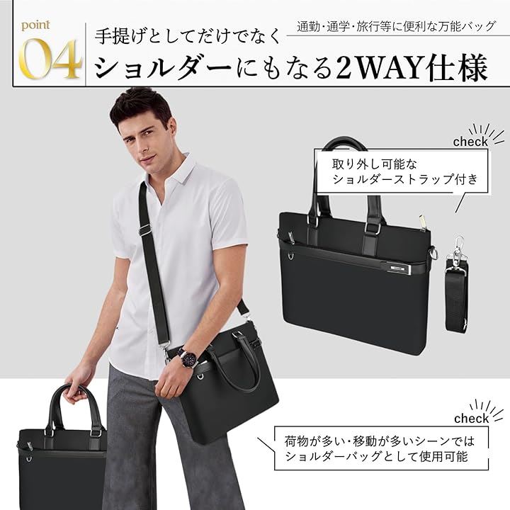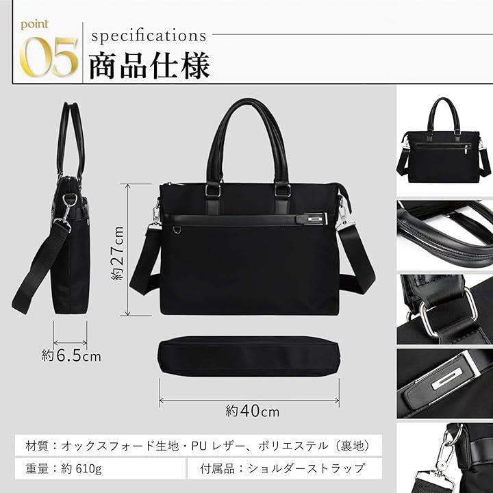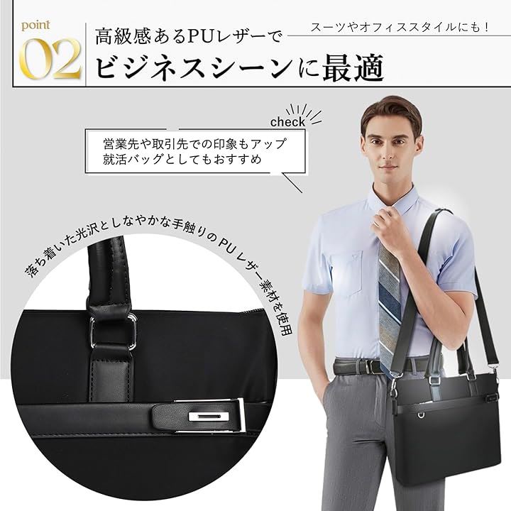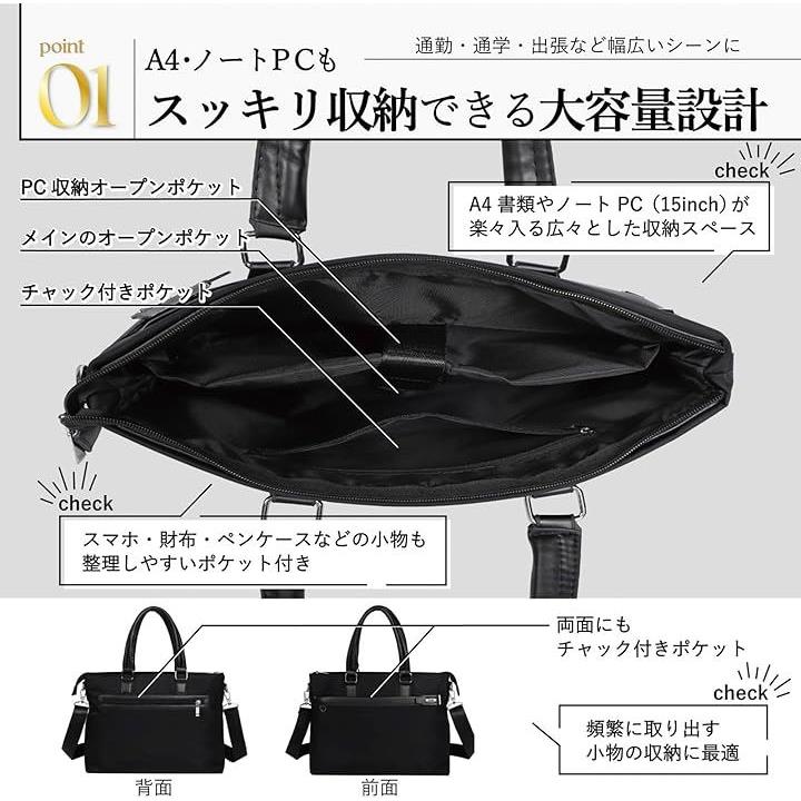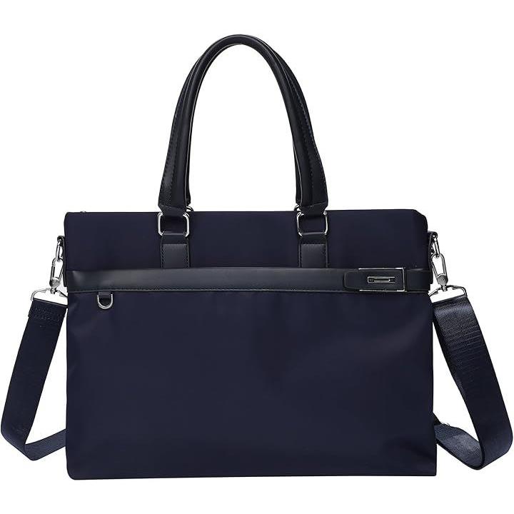 ビジネスバッグ メンズ 通勤バッグ A4・15インチPC対応 大容量 多収納 撥水加工 PUレザー 2WAY 手提げ・ショルダー兼用 軽量 就活 出張 通学対応 紺
