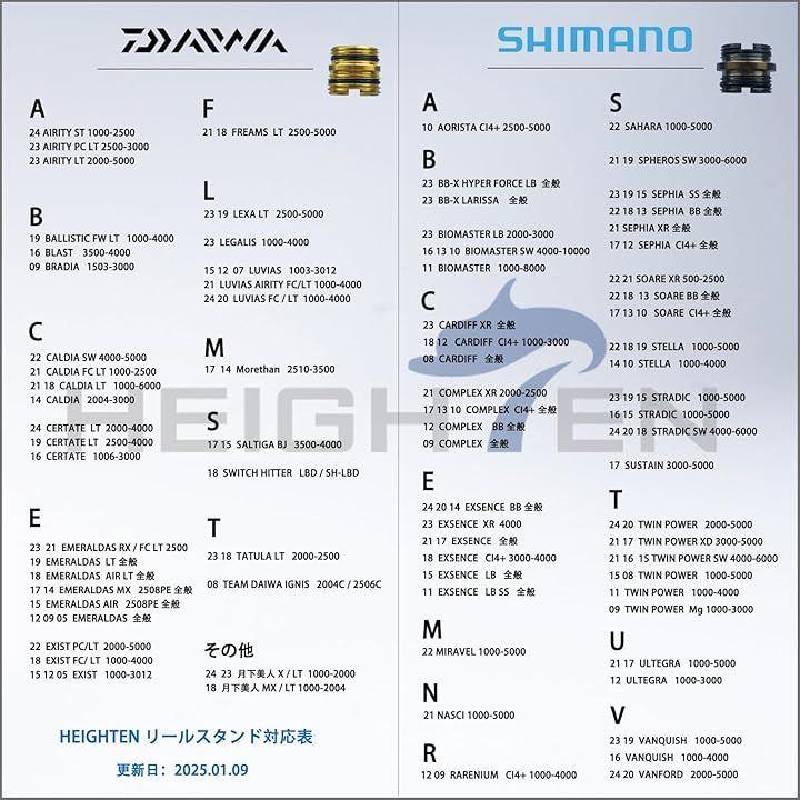 「対応機種」シマノ(SHIMANO)/ダイワ(DAIWA)のネジ込み式リール通用 (2種類のソケット付属、シマノ用ソケット元から製品に装着しておる)。