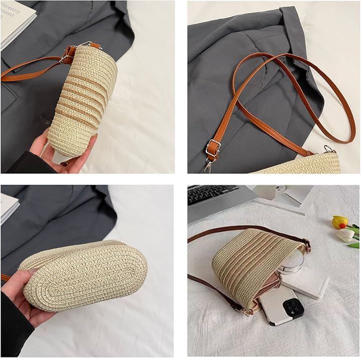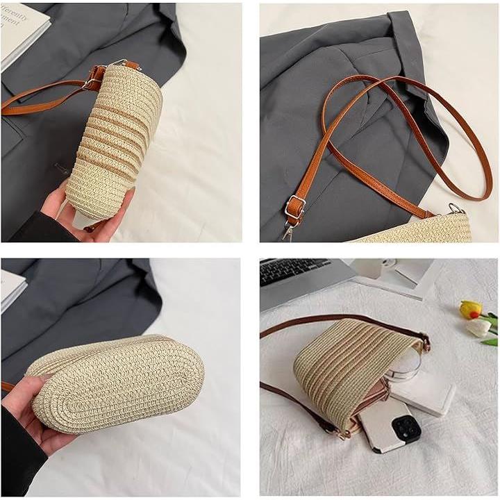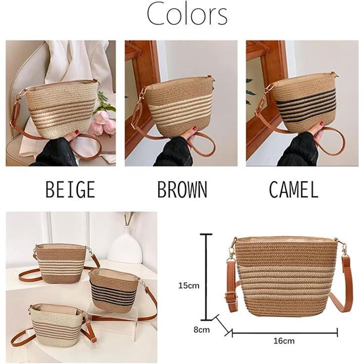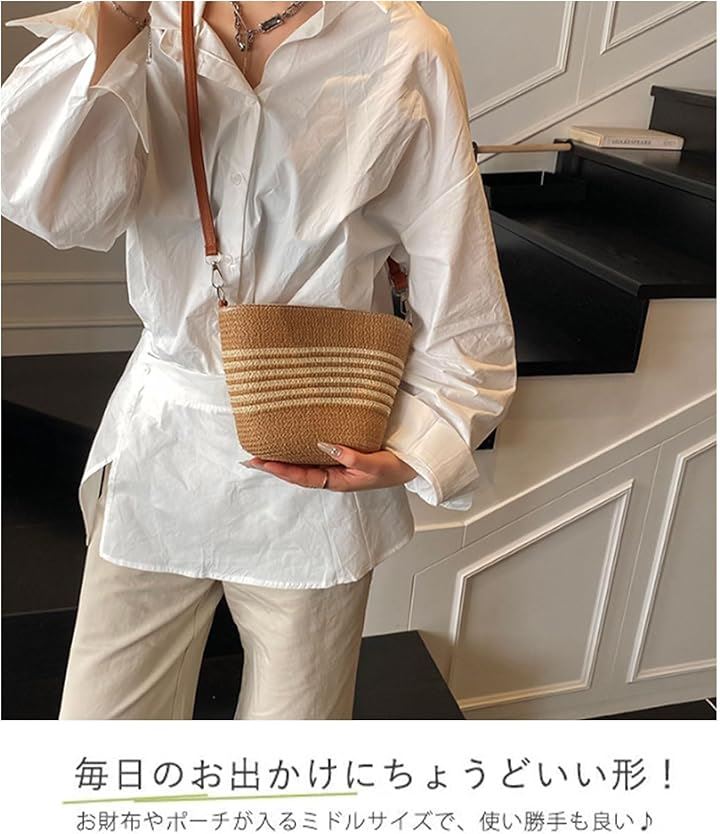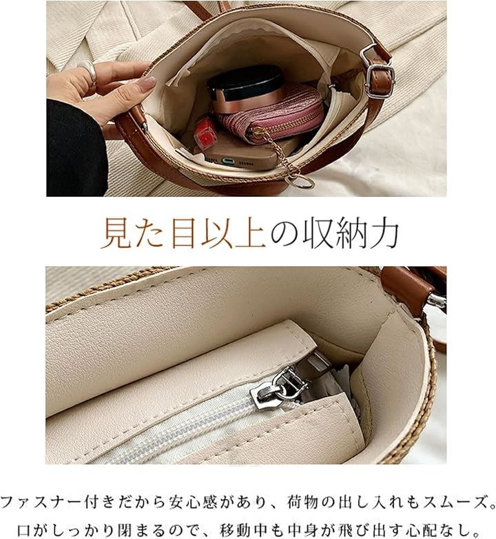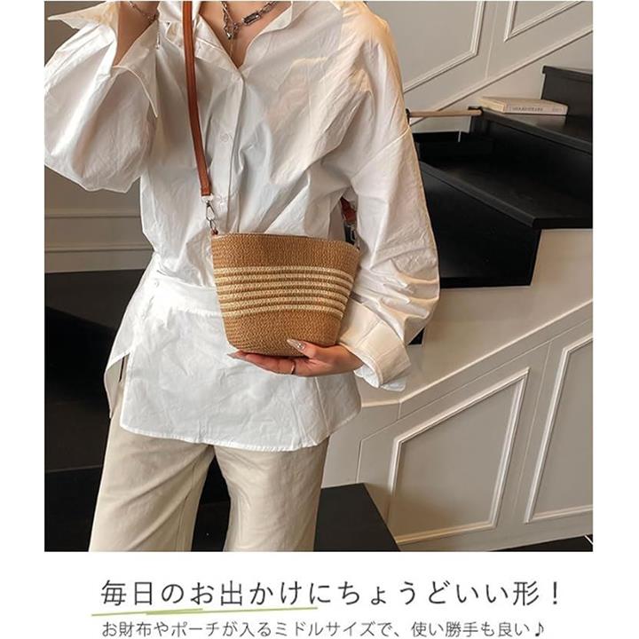 かごバッグ レディース ショルダー ボーダー シンプル カジュアル 大容量 ファスナー 斜め掛け 大人 可愛い サマーバッグ カバン 3カラー 鞄 かばん ハンド 肩掛け 春 夏 旅行 海 ビーチ 軽い 軽量 ポケット ストロー 編み