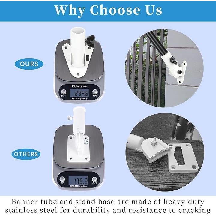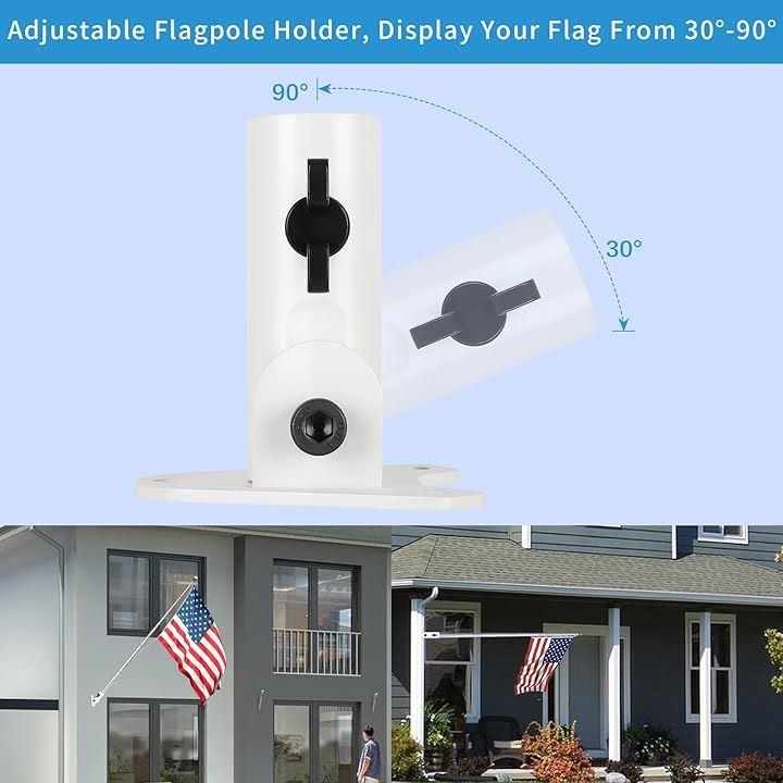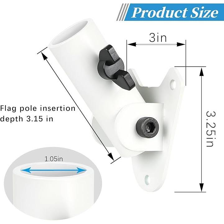 旗ホルダー 2個セット 旗立て 国旗ポール取付金具 調節可能 フラッグポールベース 旗竿ブラケットベース 旗竿取り付けブラケット 国旗ポールホルダー アルミニウム合金 ホワイト