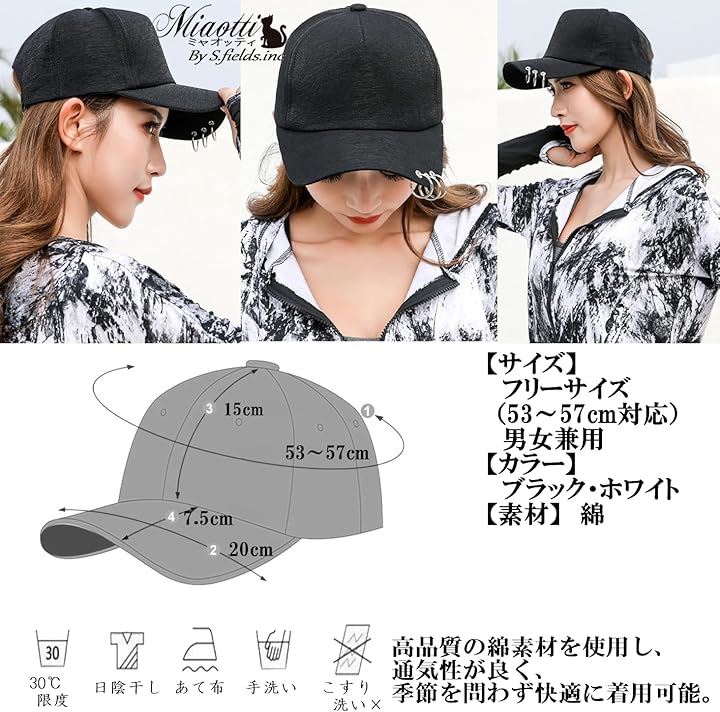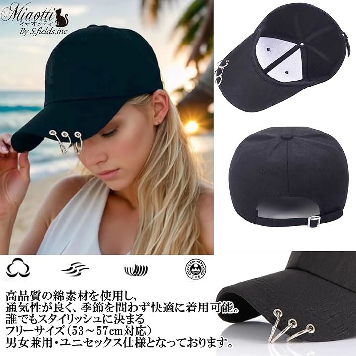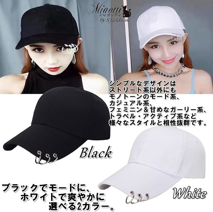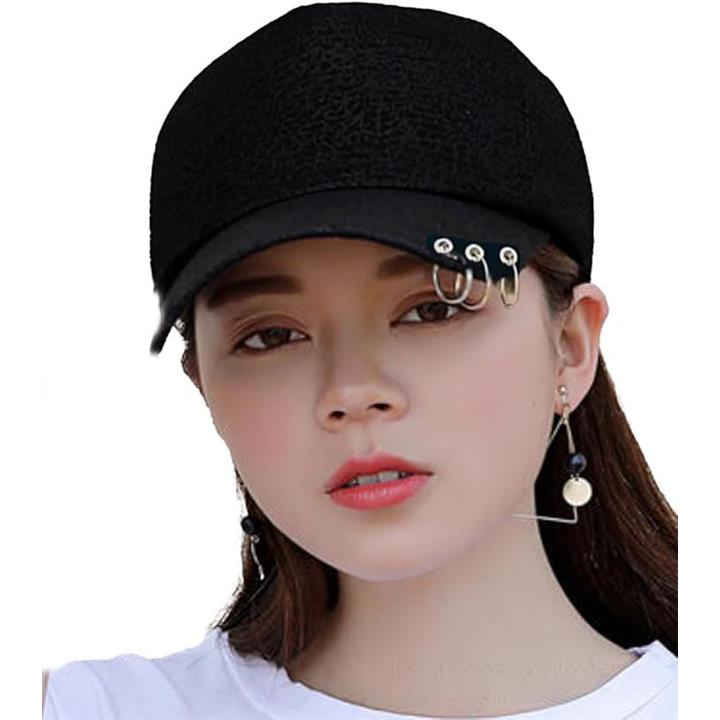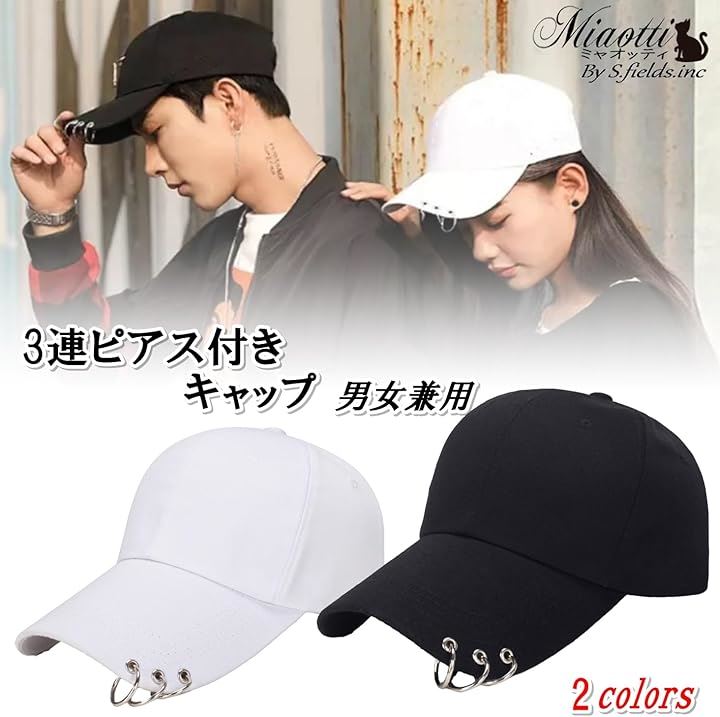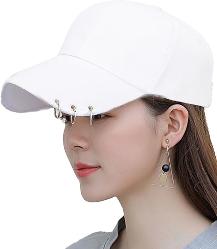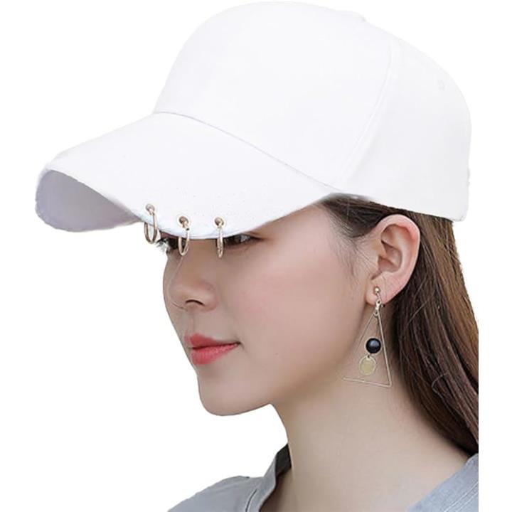 帽子 リング付き キャップ 3連ピアス 韓国 K-POP 男女兼用 フリーサイズ 綿