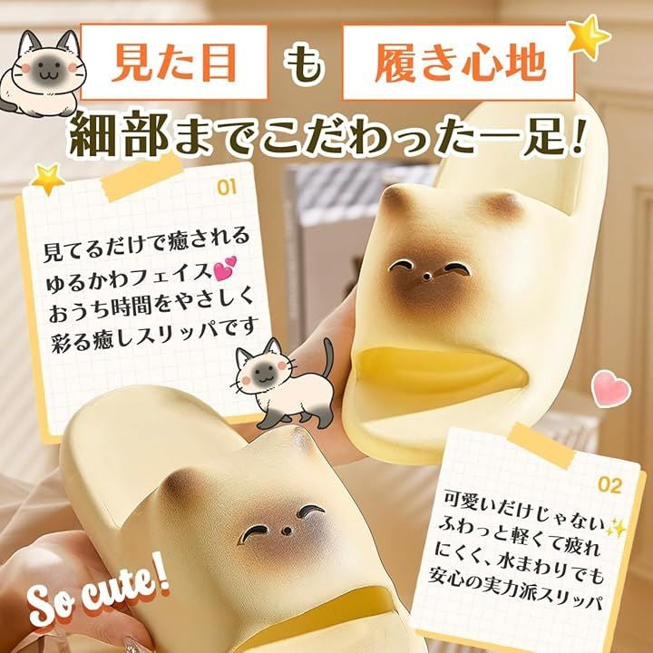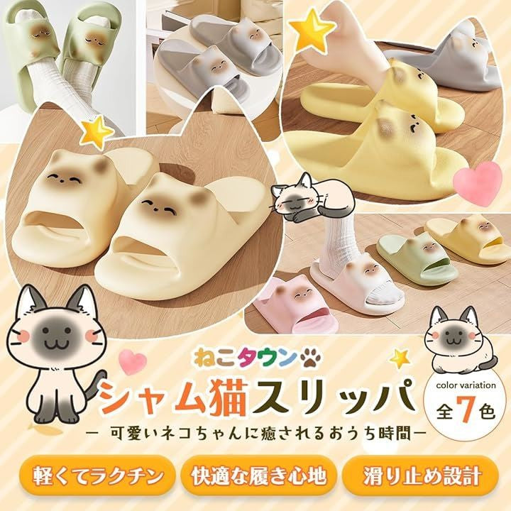 シャム猫スリッパ 軽量 フリーサイズ 24~26.5cm 室内 屋外 ベランダ・風呂・キッチン対応
