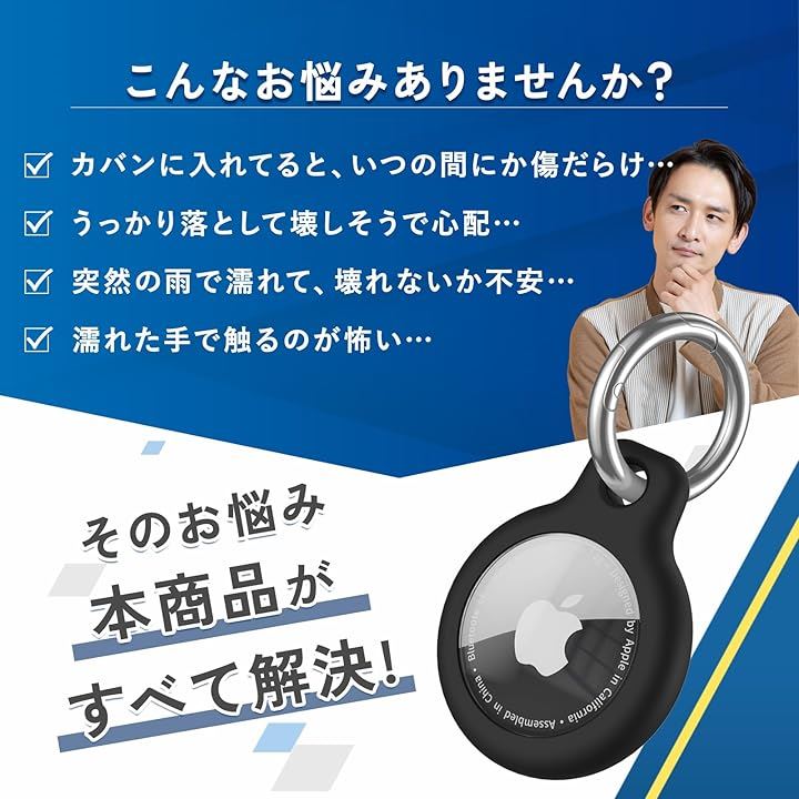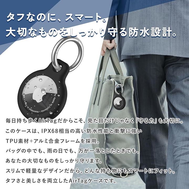 AirTag ケース防水 シリコン キーホルダー TPU製 全面保護 エアタグケース 持ち運びに便利 傷 耐衝撃 擦傷防止 車のカギ カバン 荷物 財布