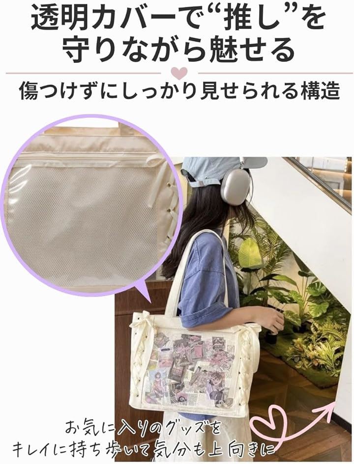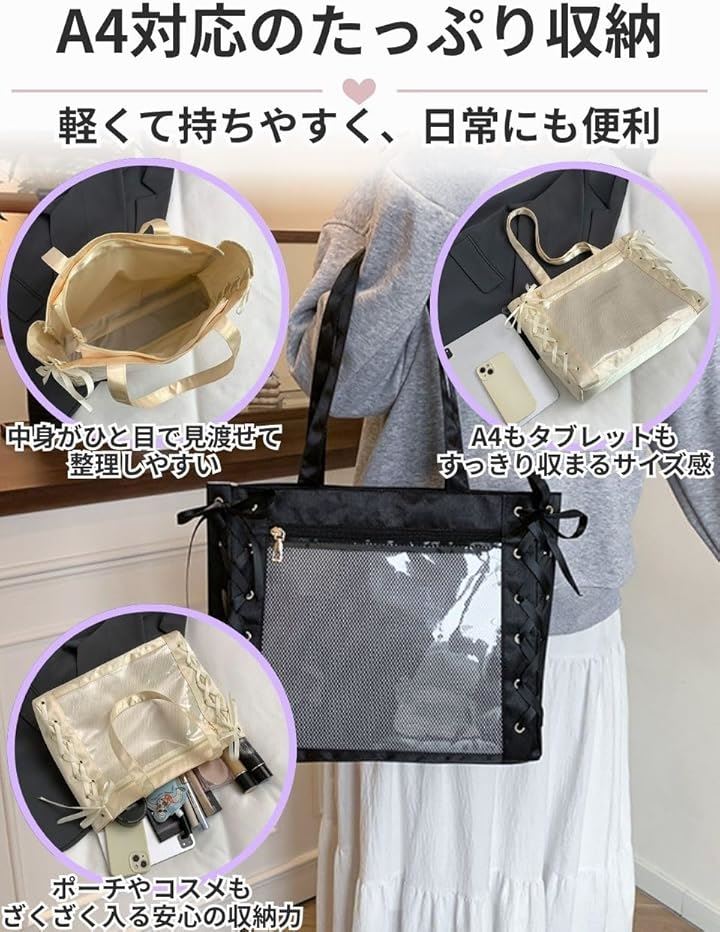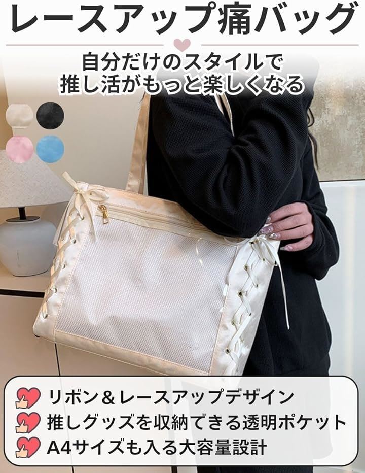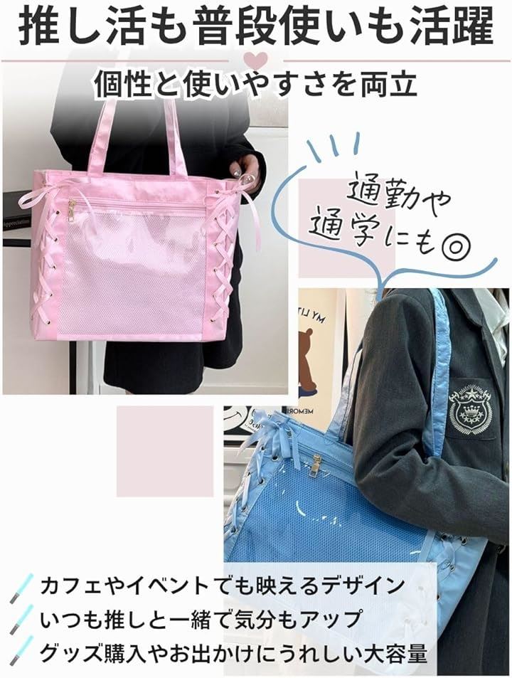 痛バッグ 推し活 オタ活 トート レースアップ リボン A4 ライブ イベント グッズ