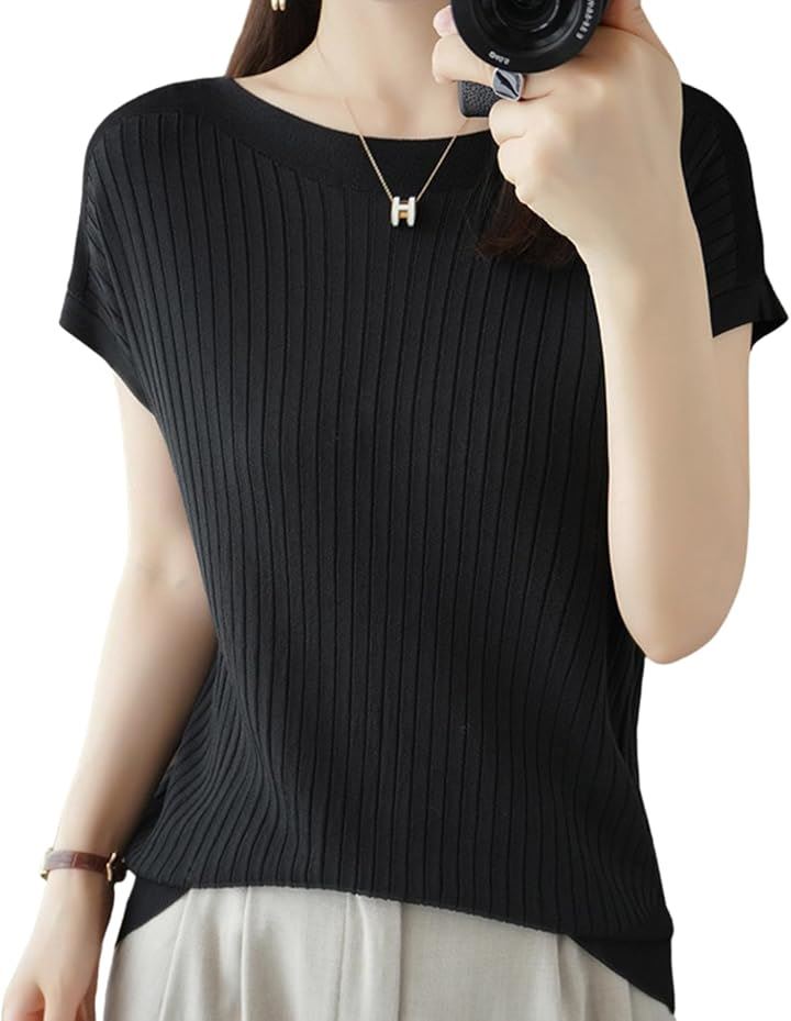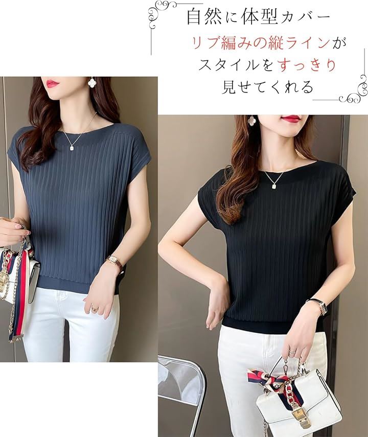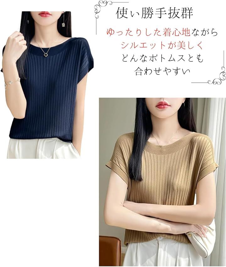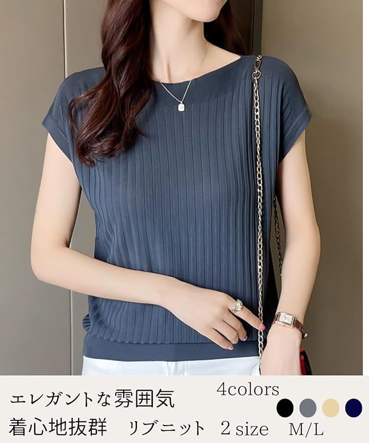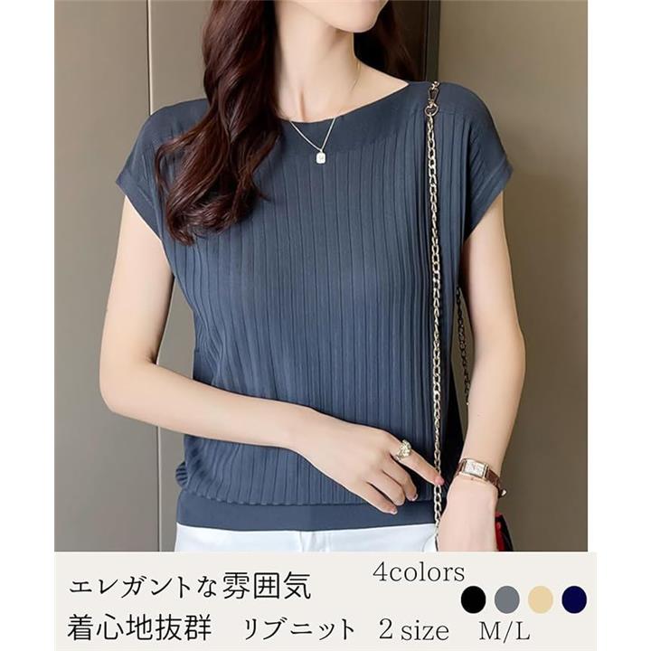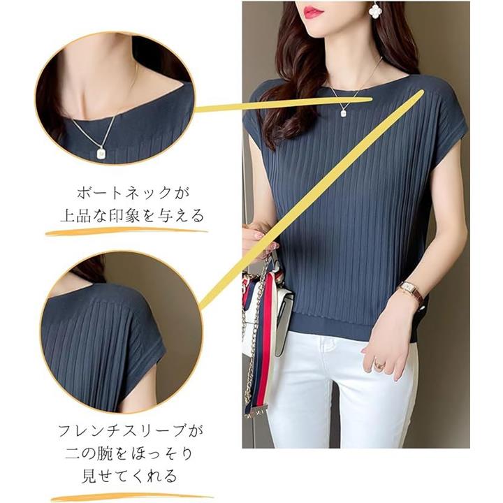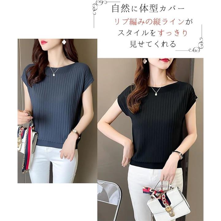 サマーニット レディース 半袖 フレンチスリーブ カーディガン サマーセーター インナー リブ 薄手 トップス カットソー 5分袖 きれいめ