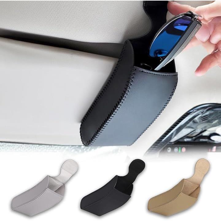 車 サングラス ホルダー 縦型 メガネ 収納 PU レザー サンバイザー取付 レンズ拭き付き
