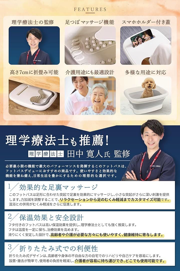 フットバス 理学療法士監修 足湯 バケツ 桶 折りたたみ 蓋付き携帯電話を置ける便利なフタ付きデザイン 足浴 足湯器 泡脚桶 折り畳み 折畳み 保温 介護