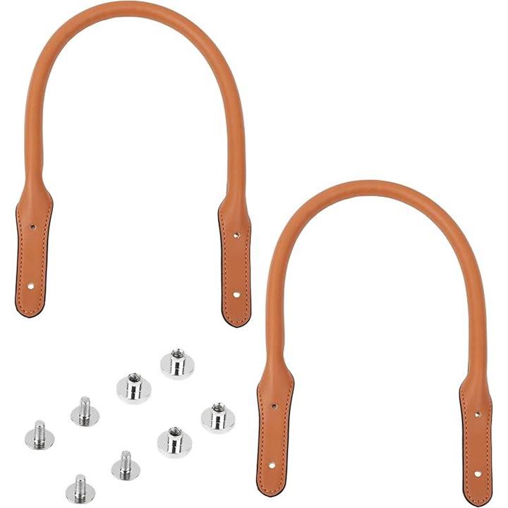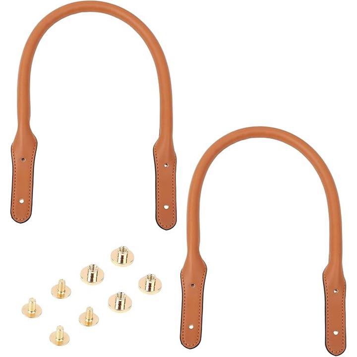 バッグ 持ち手 交換用 ハンドル 45cm 2本組 取付ネジ付き 修理用パーツ DIY対応 ブラウン PUレザー