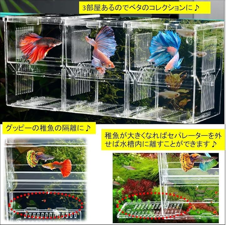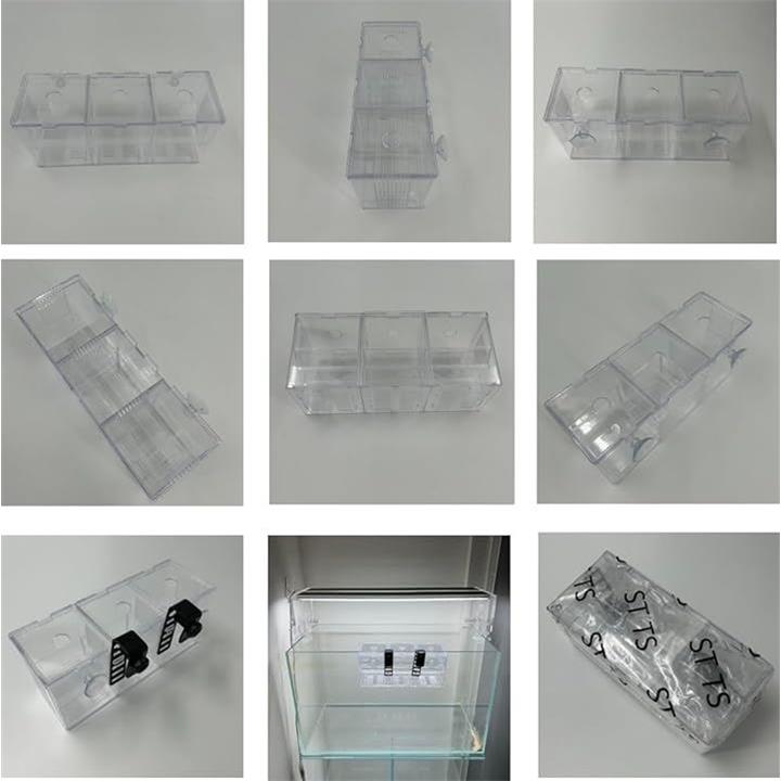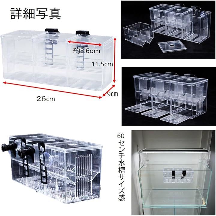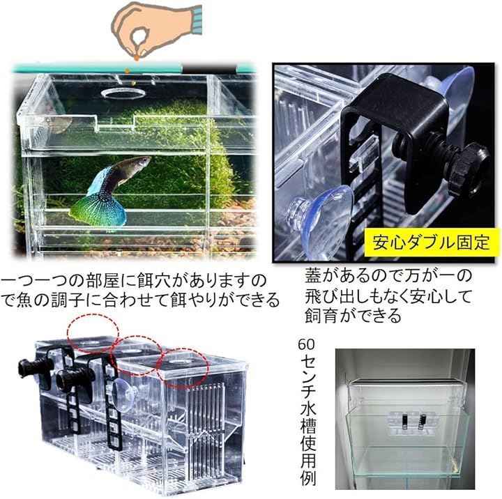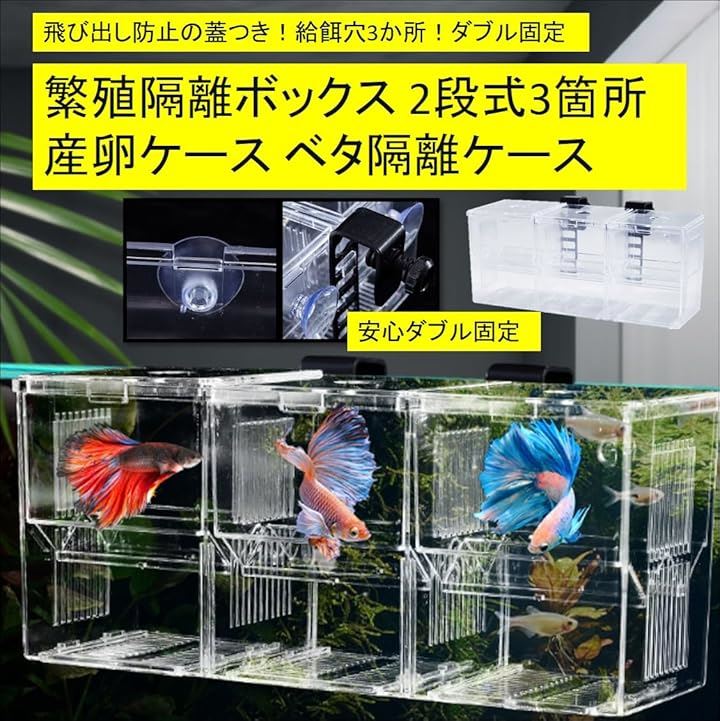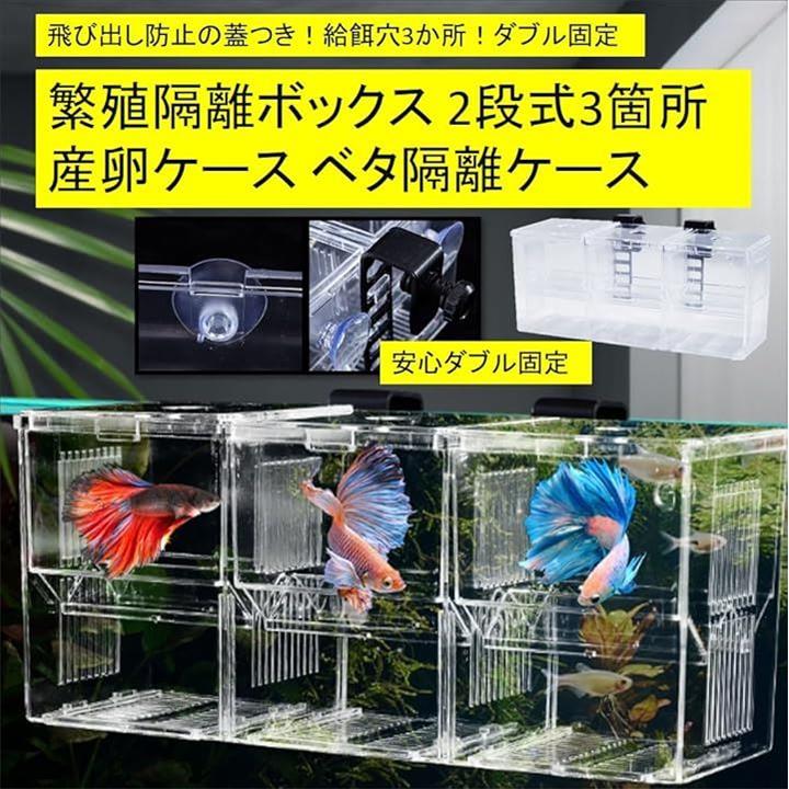 繁殖隔離ボックス 2段式3箇所 産卵ケース ベタ隔離ケース 隔離箱 水槽用 孵化 産卵箱 魚の隔離 飼育保護 透明 アクリル クリア