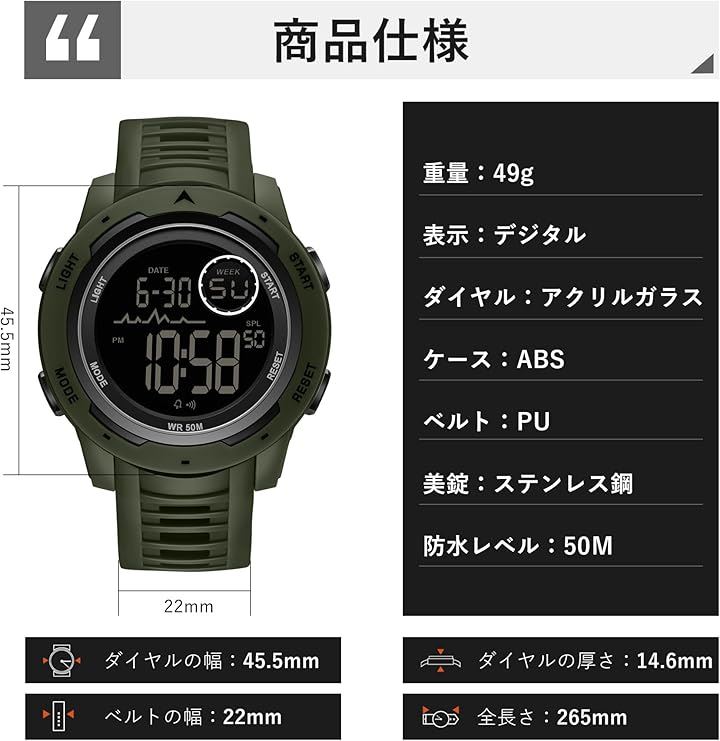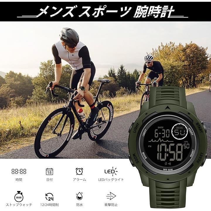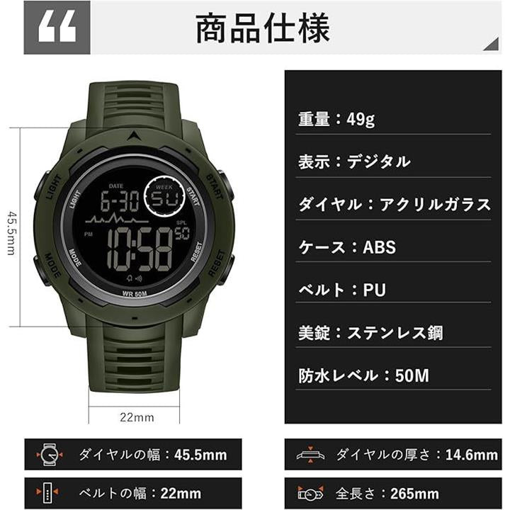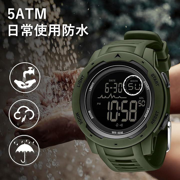 腕時計 メンズ デジタル スポーツウォッチ防水 多機能付き デジタル腕時計 日付/曜日/アラーム/ストップウォッチ