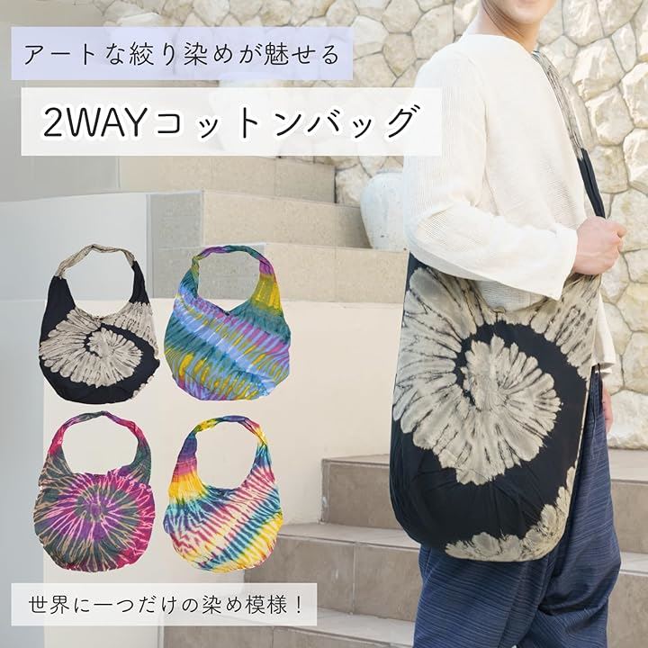 [絞り染めが魅せる2WAYバッグ] 個性的な絞り染めパターンが目を引く、コットン100%素材のカジュアルバッグ。