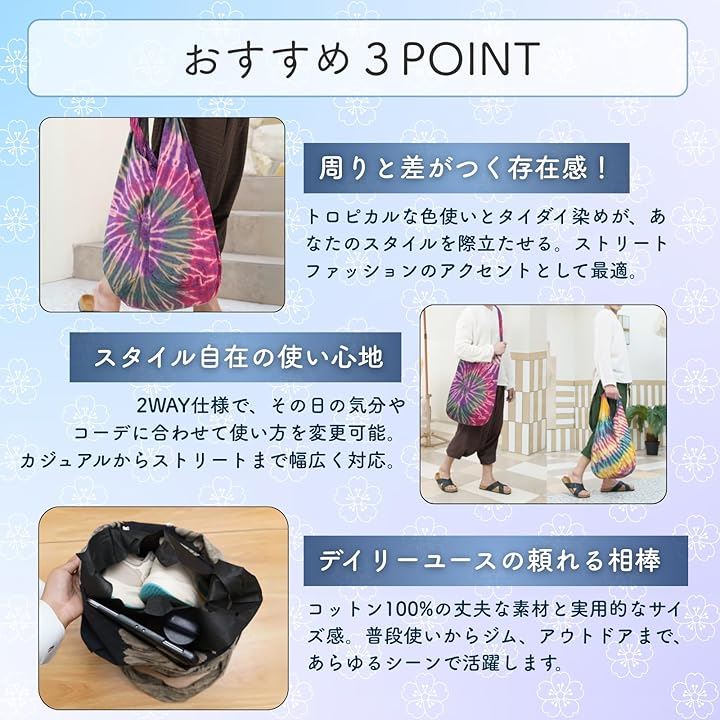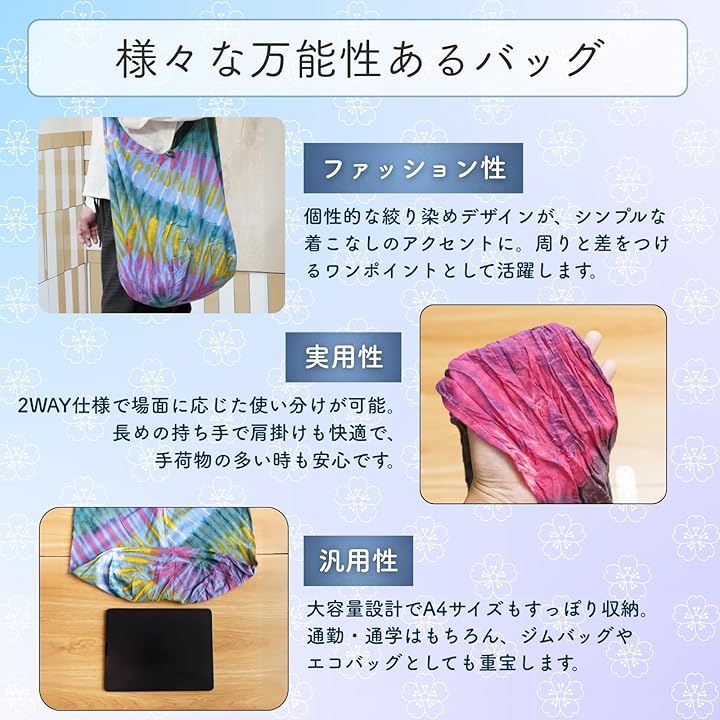[ジェームズ・スクエア] JS032 絞り染め コットン 布 バッグ 綿100 エコ ショルダー トート スポーツ 大容量 布バッグ 袴 タイダイ 折畳み オシャレ コンパクト マチ付き 可愛い 大きい 丈夫 帆布 |