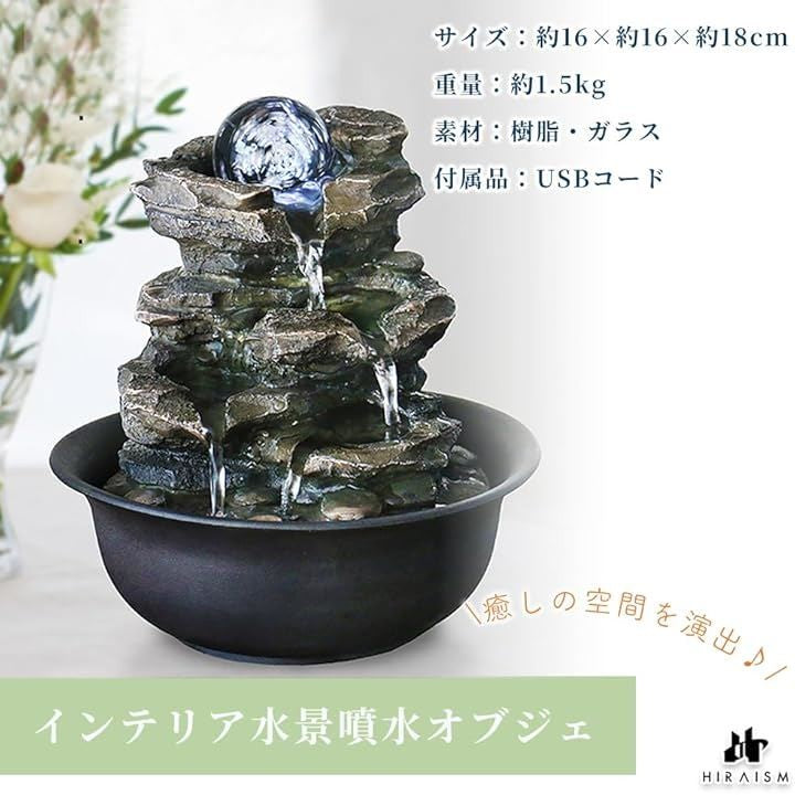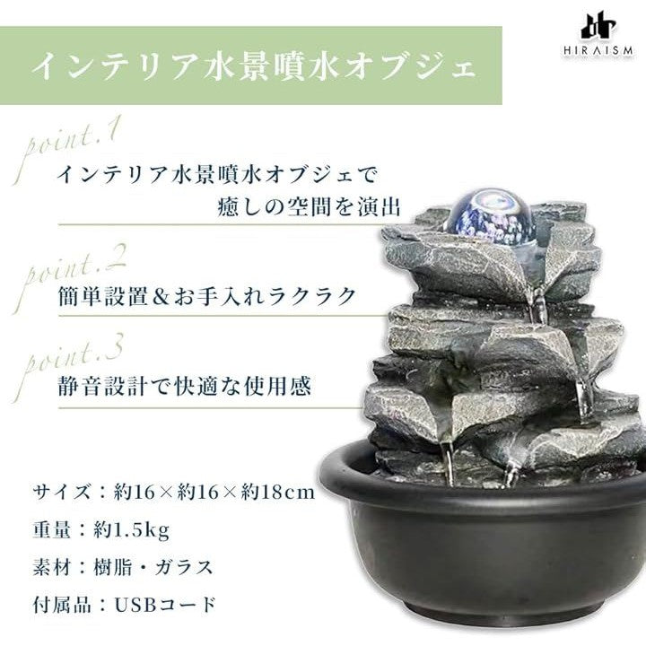 卓上噴水 循環式 水の音 癒し 風水 クリスタルボール付き インテリア おしゃれ 小型 室内装飾 オフィス リビング用 ギフトにも