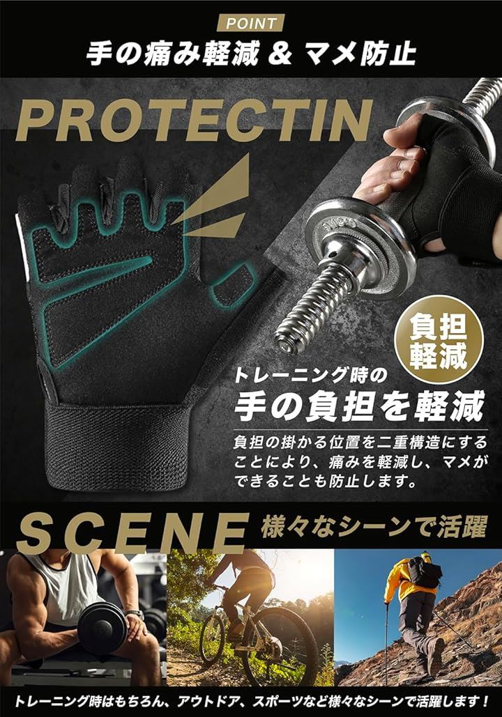 筋トレ グローブ メンズ レディース トレーニンググローブ 手首 パワーグリップ 手袋 マメ防止 ジム ベンチプレス