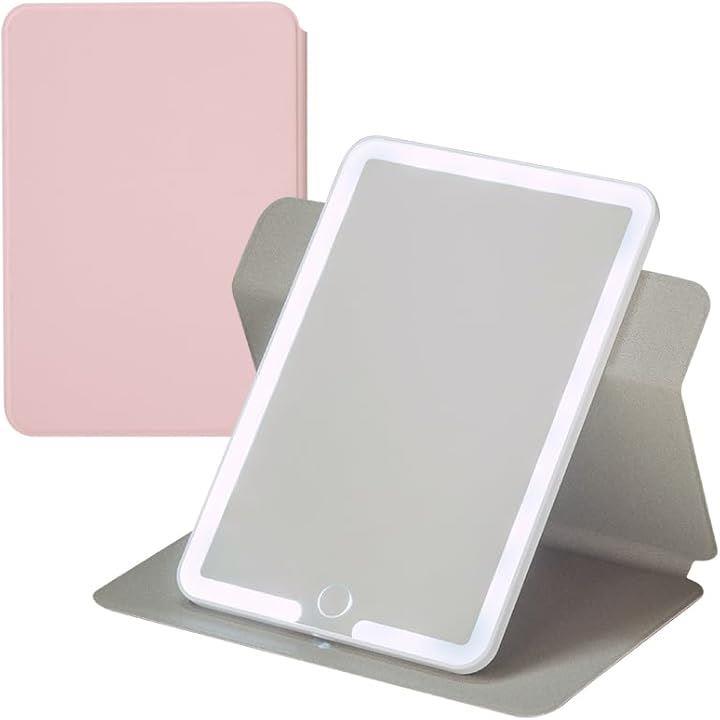 女優ミラー 卓上 LEDライト付き 折りたたみ式 コンパクトメイク USB充電式 明るさ調整可能 三色調光 軽量 持ち運び 収納カバー付き